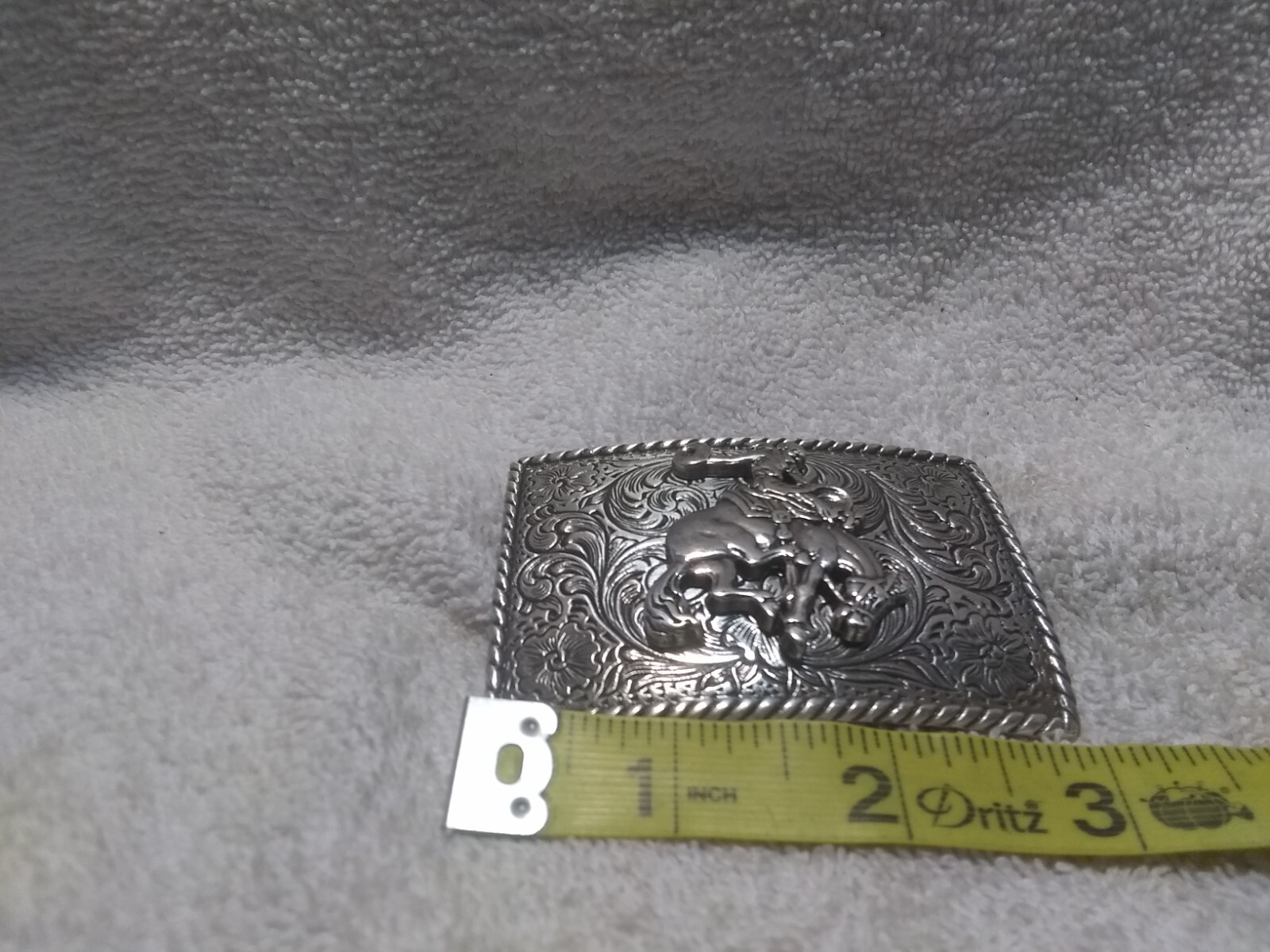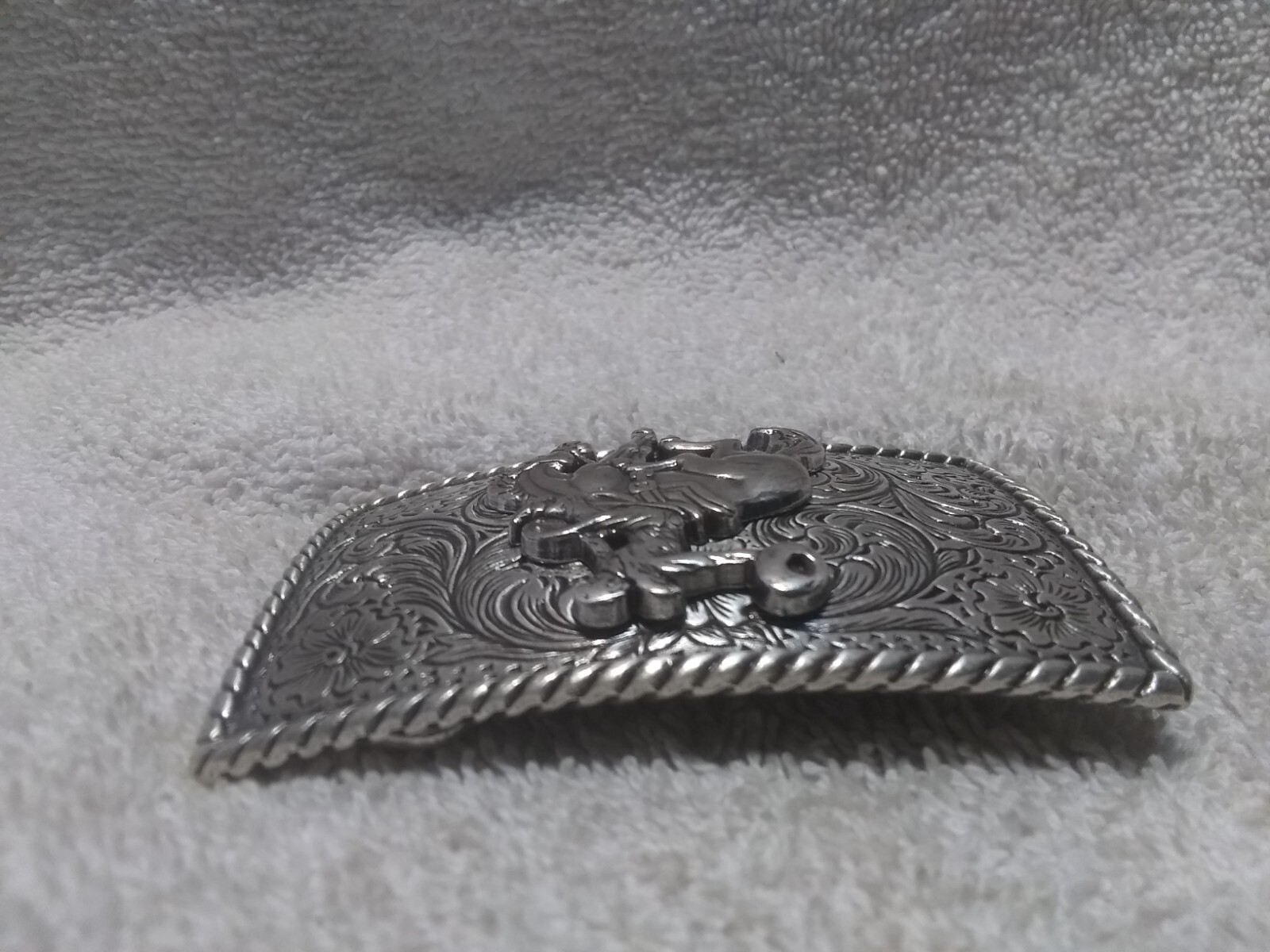 Nocona Buckles Silver Flower Engraved Bucking Bronco Rectangle Buckle Great