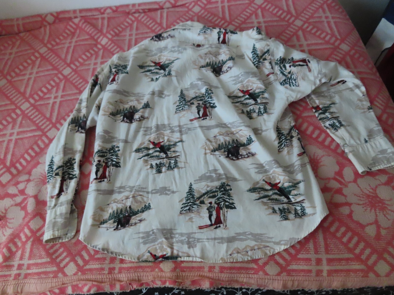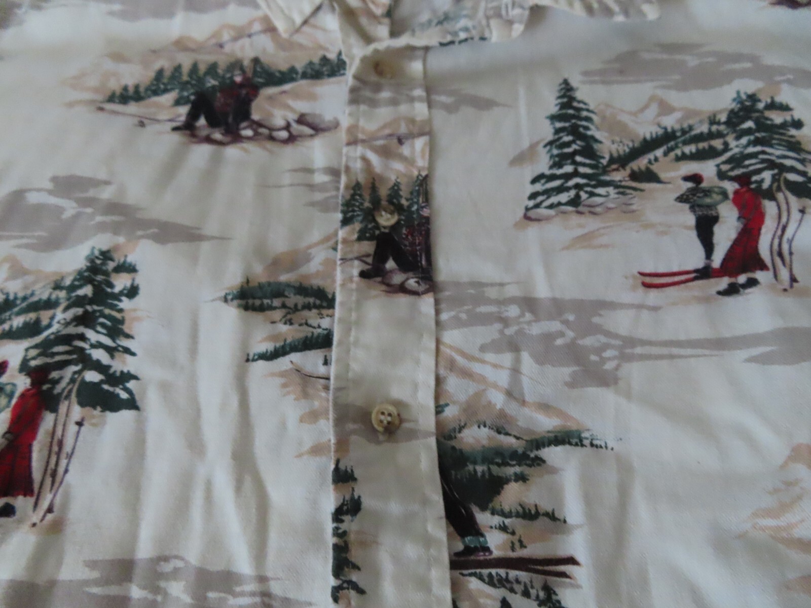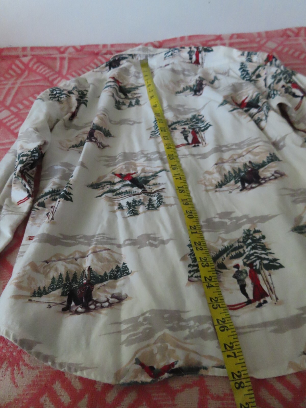 как выглядит VTG 80s Garnet Hill USA Twill Button Up Shirt Ski Motif Pattern Small Skiers фото