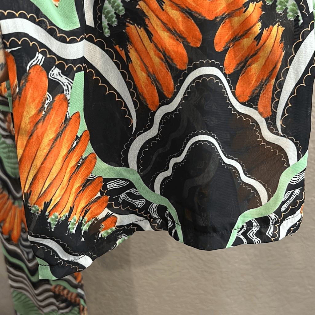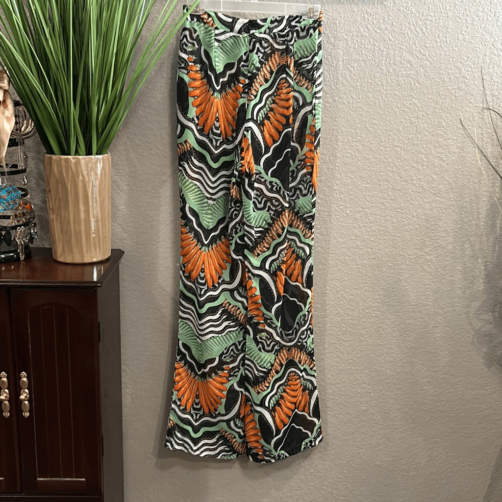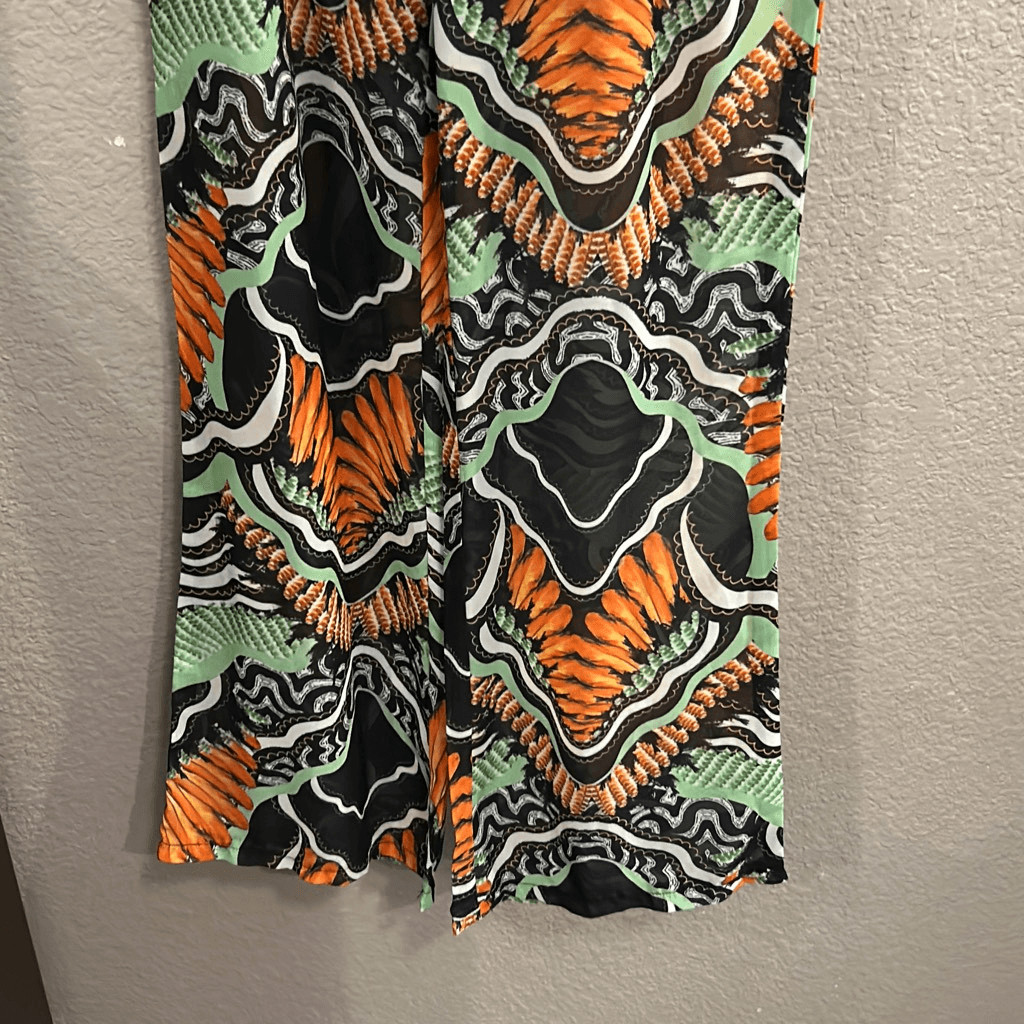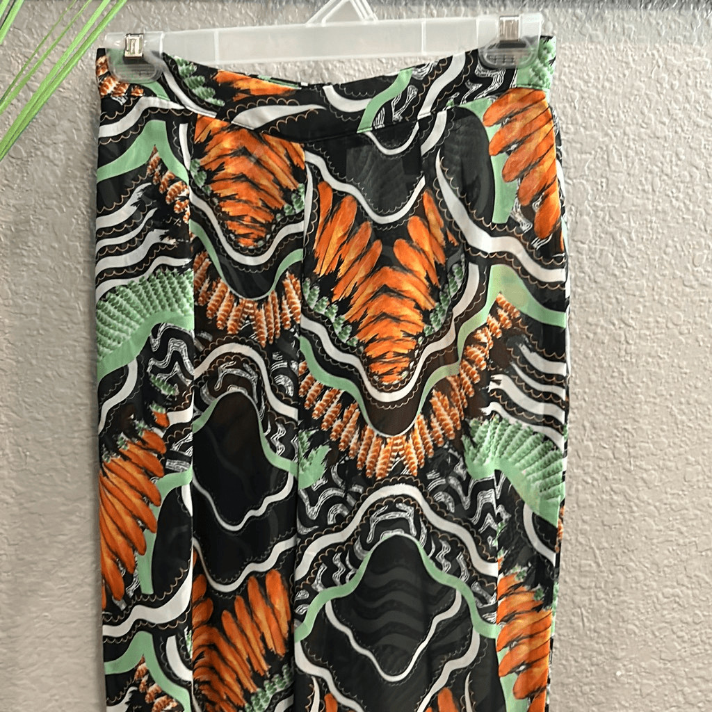 404 pretty little thing, sheer beach, pants, topical print size 4
