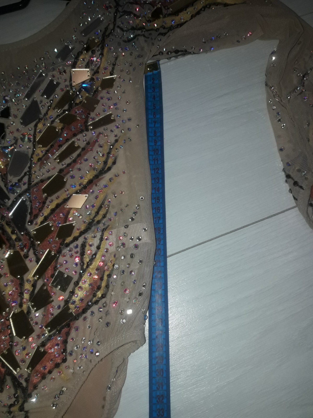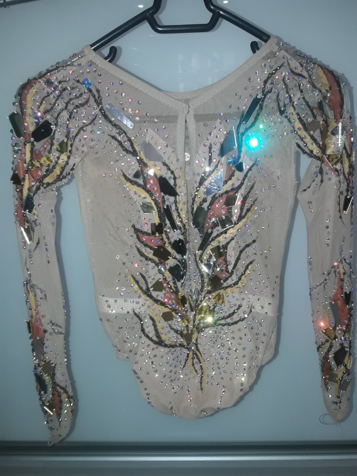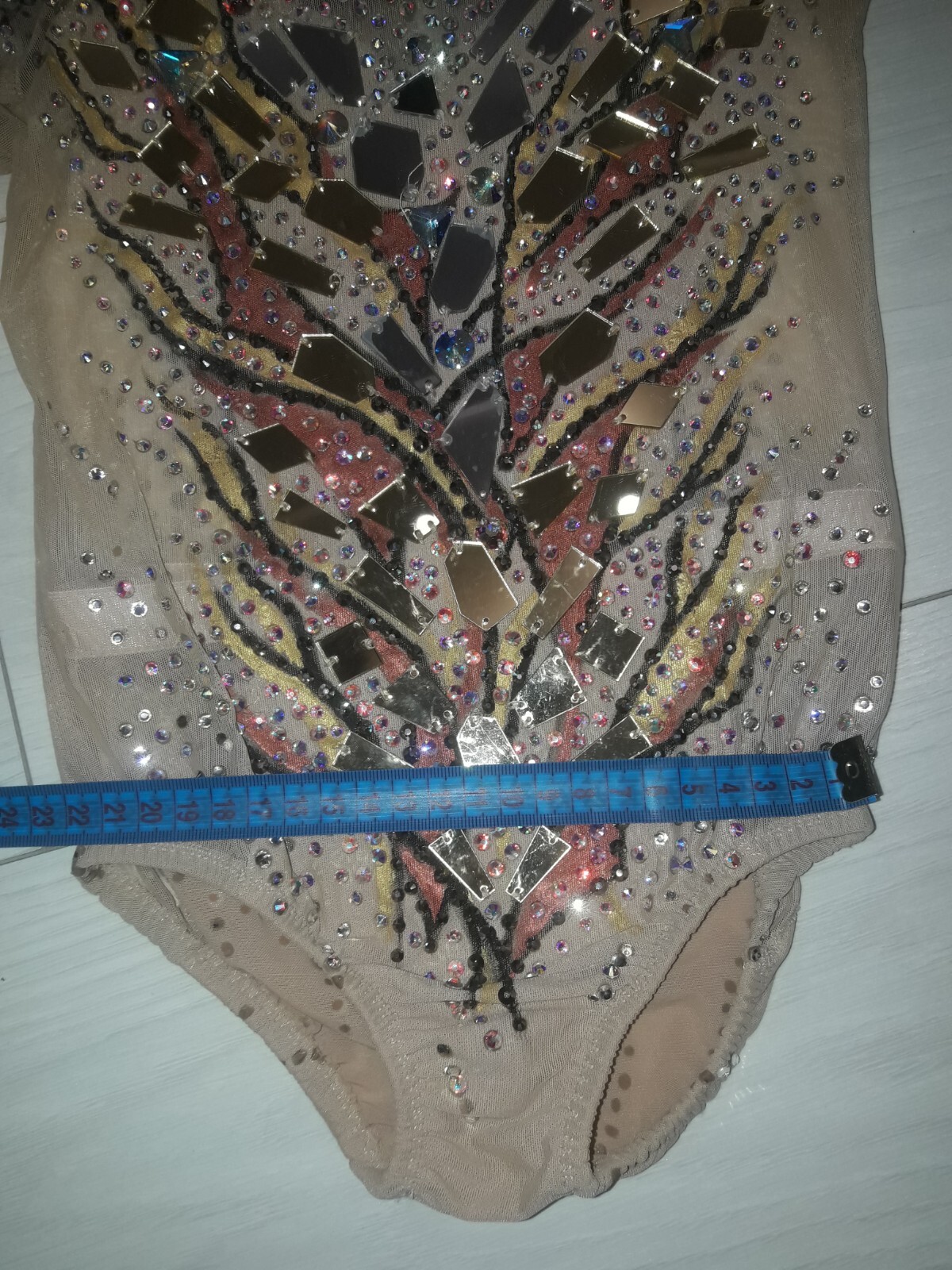 как выглядит Exclusive Beige Rythmic gymnastics competition leotard/ice skating with crystals фото