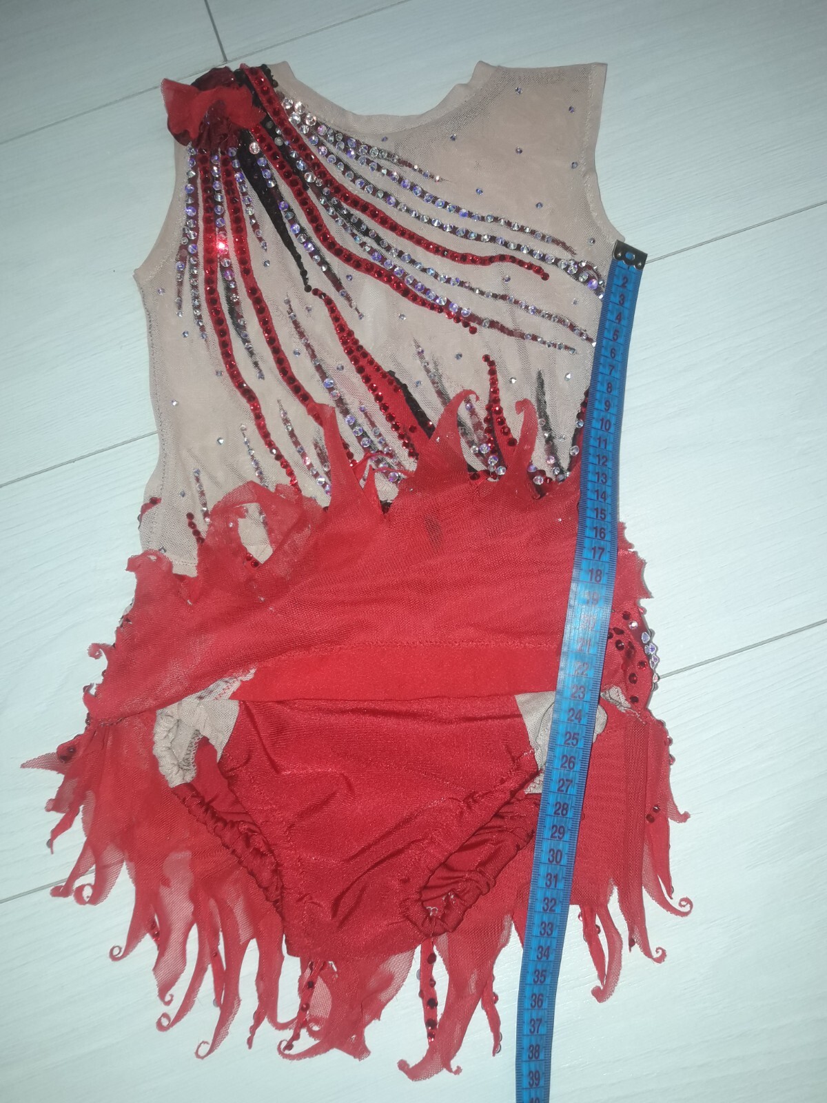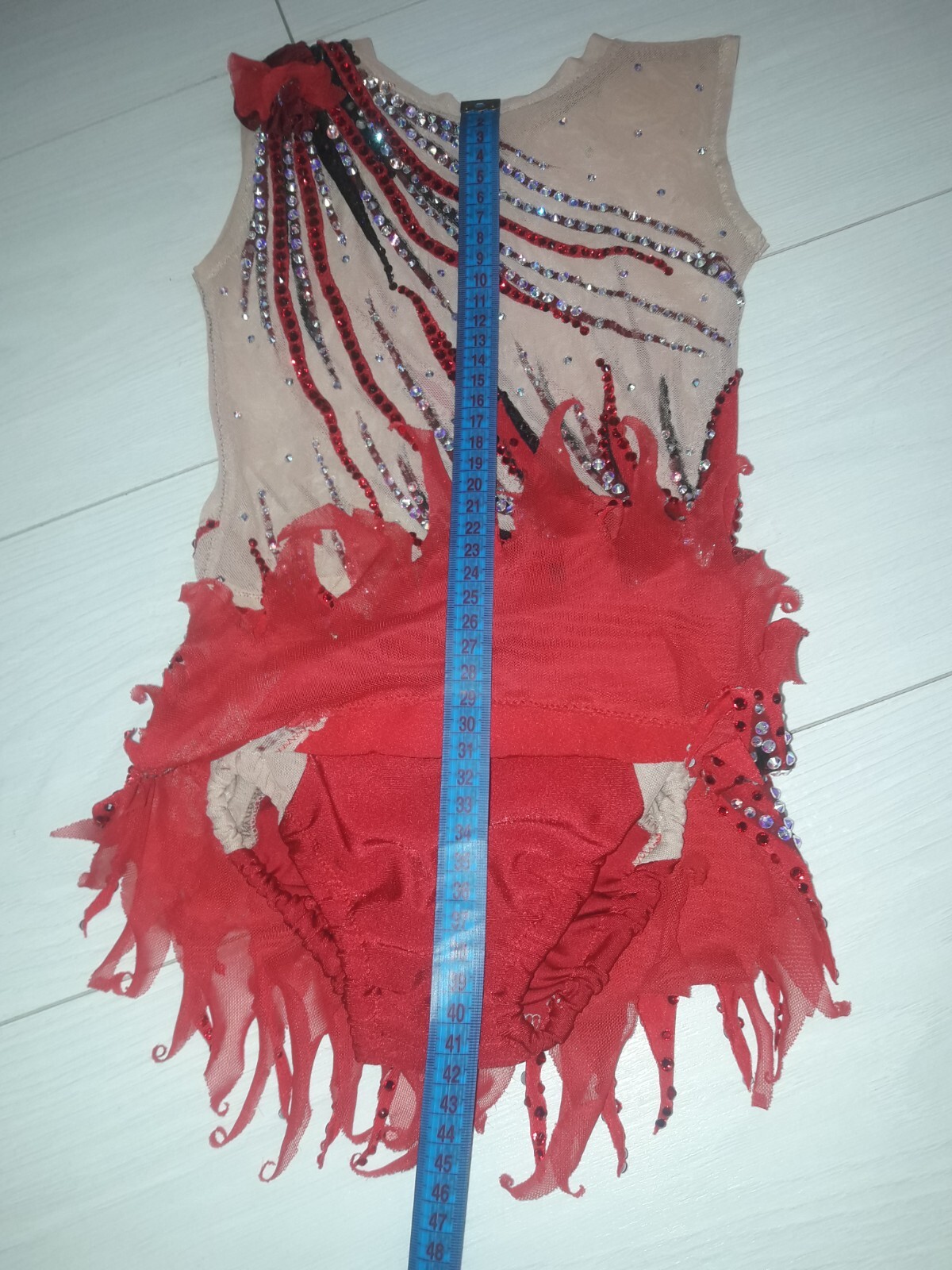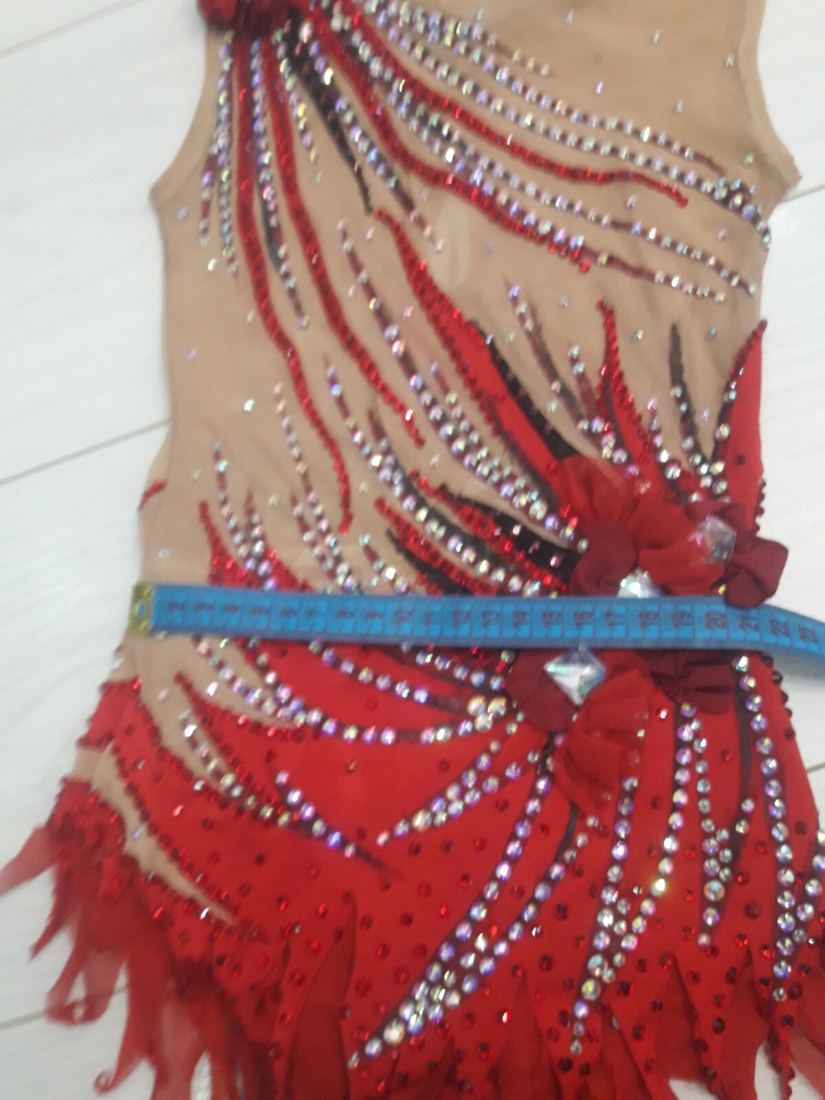 как выглядит Exclusive Red Rythmic gymnastics competition leotard/ice skating with crystals фото