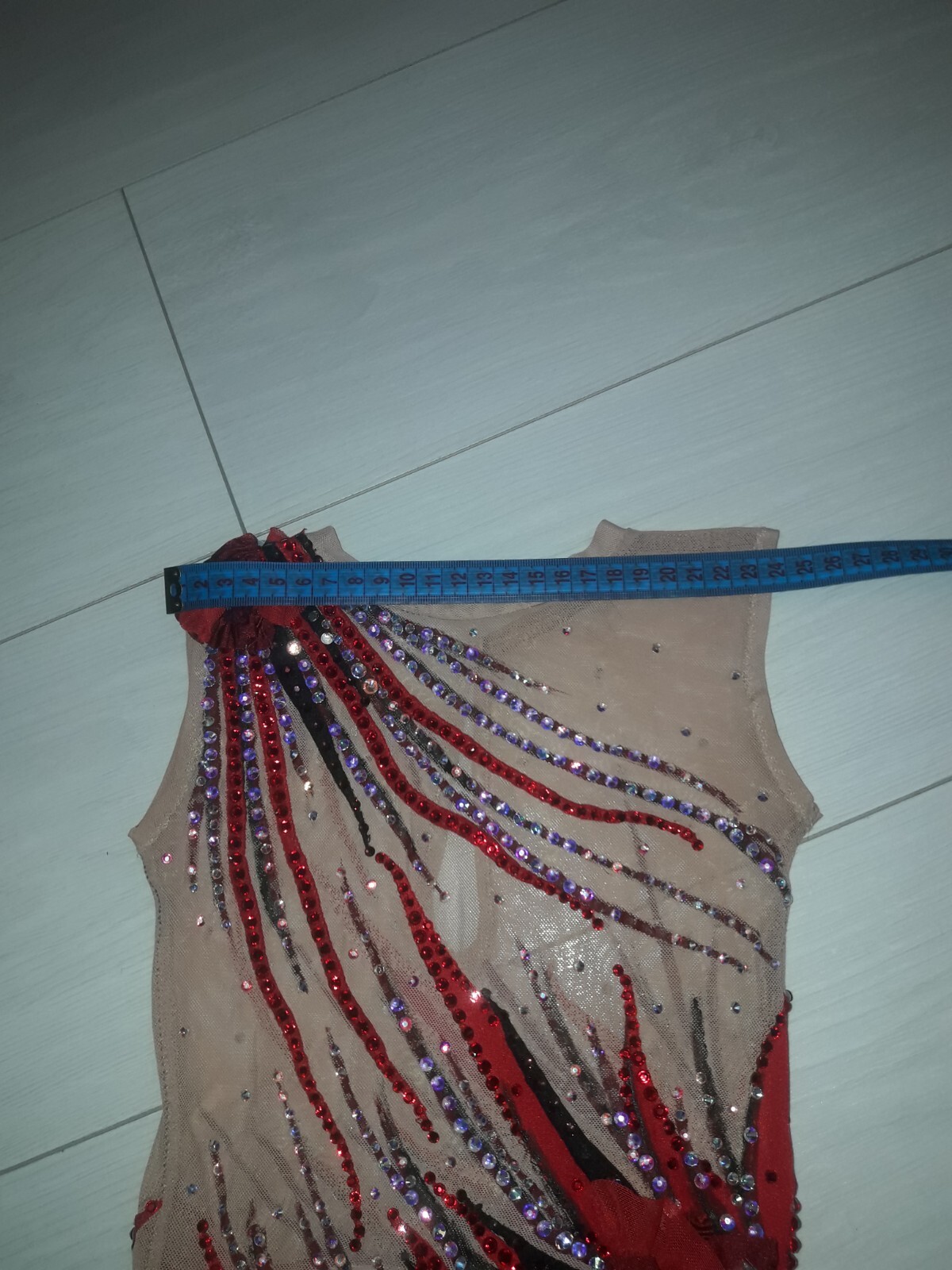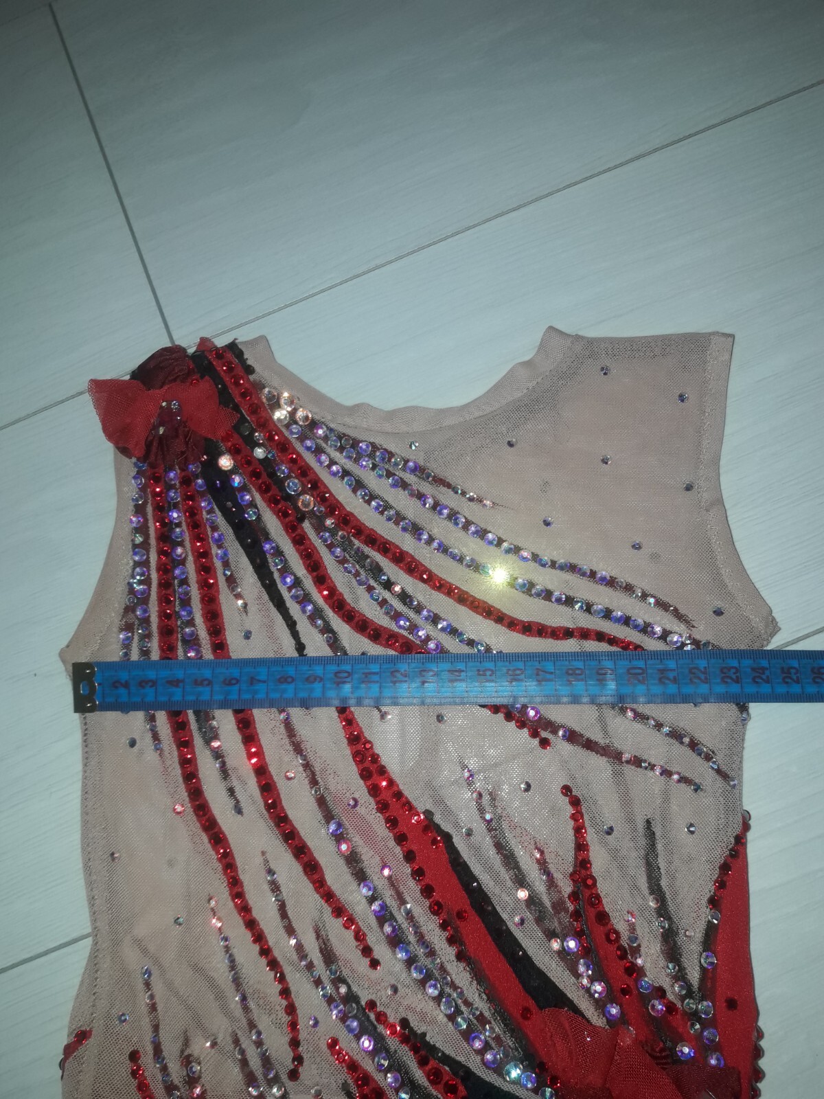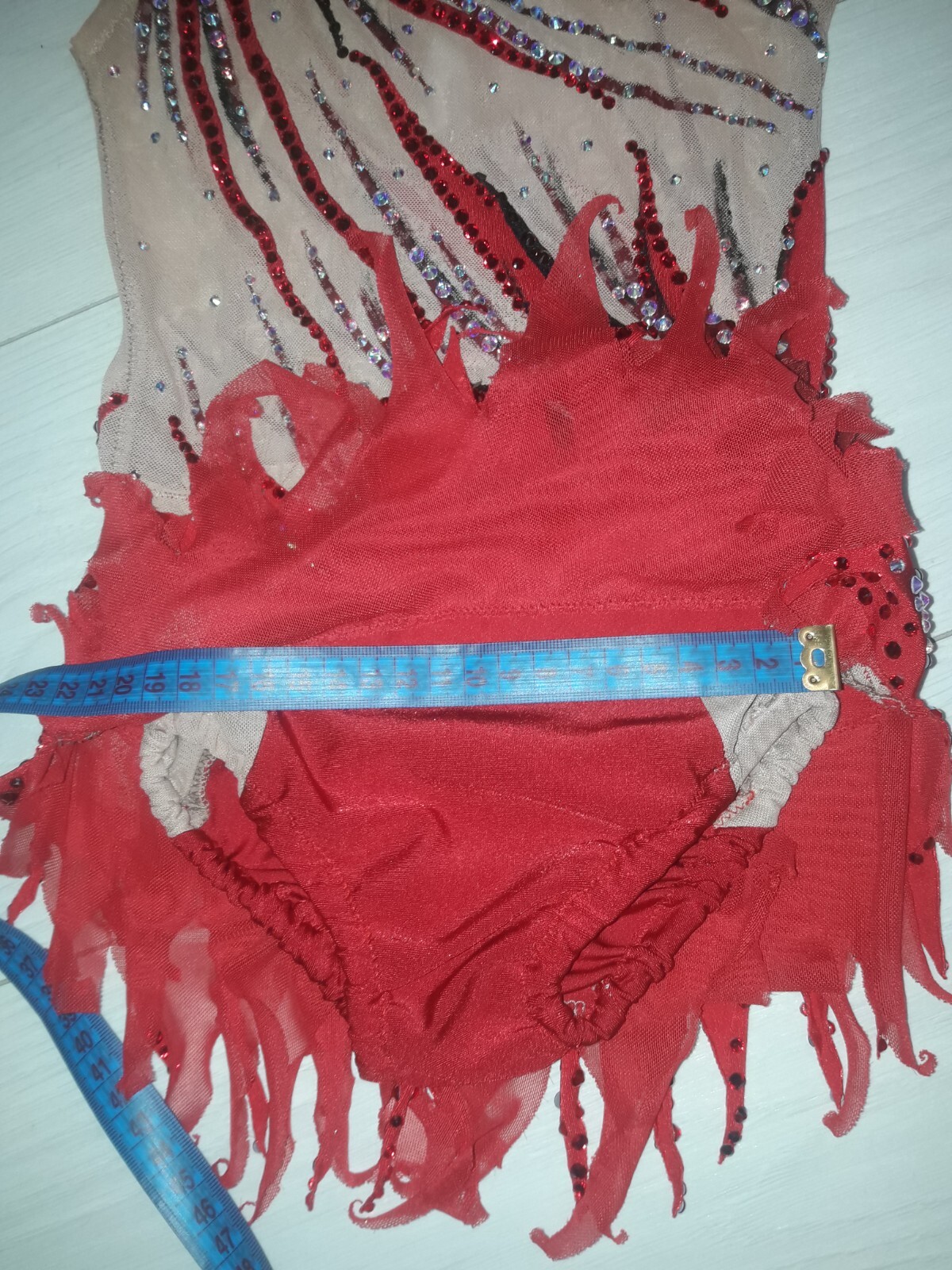 как выглядит Exclusive Red Rythmic gymnastics competition leotard/ice skating with crystals фото
