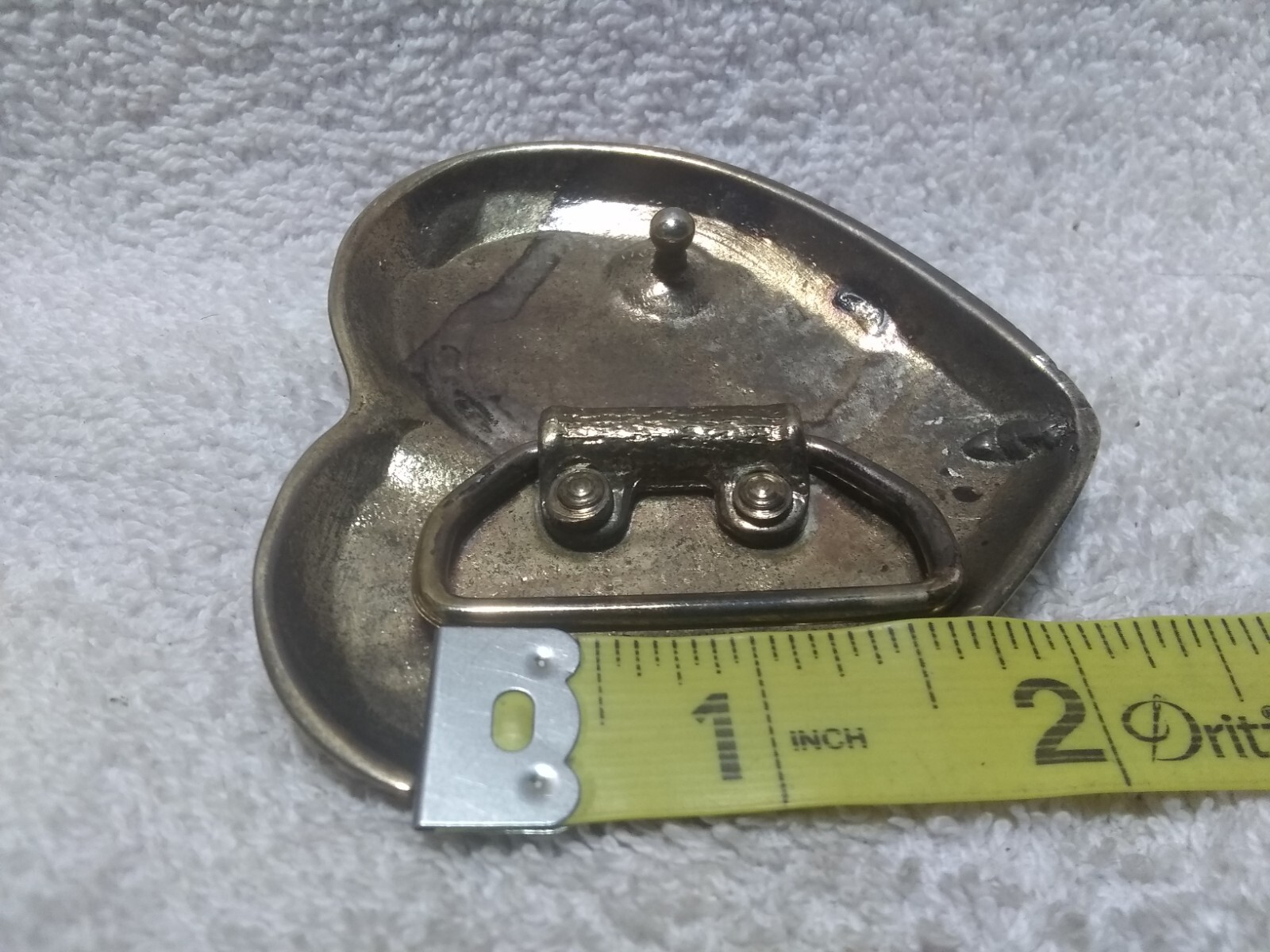 как выглядит Large Gold Engraved Flower Leaves Filled Heart Belt Buckle Great Vintage Shape фото