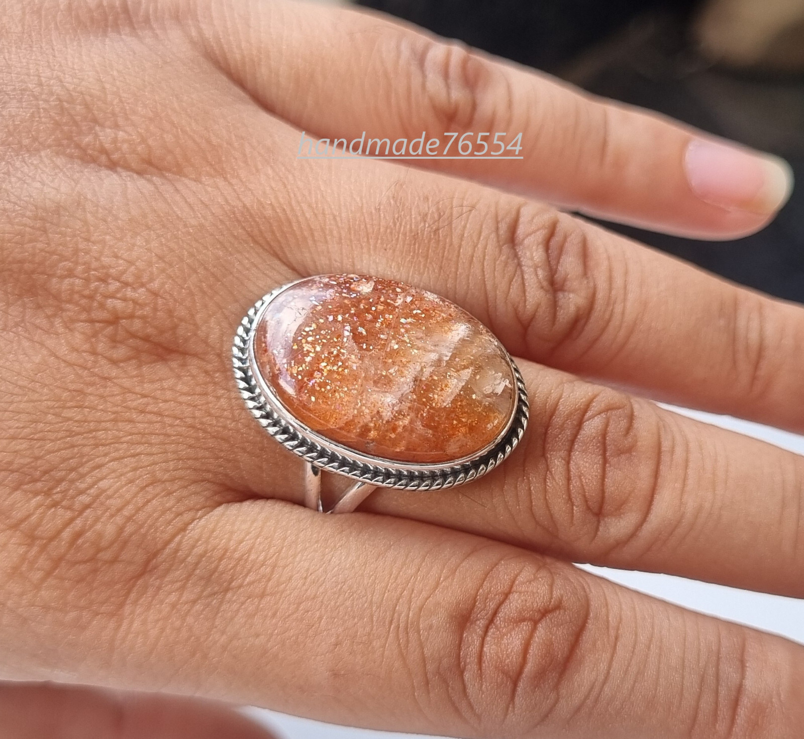 как выглядит Natural Sunstone Oval Gemstone 925 Sterling Silver Handmade Ring For Her PG889 фото