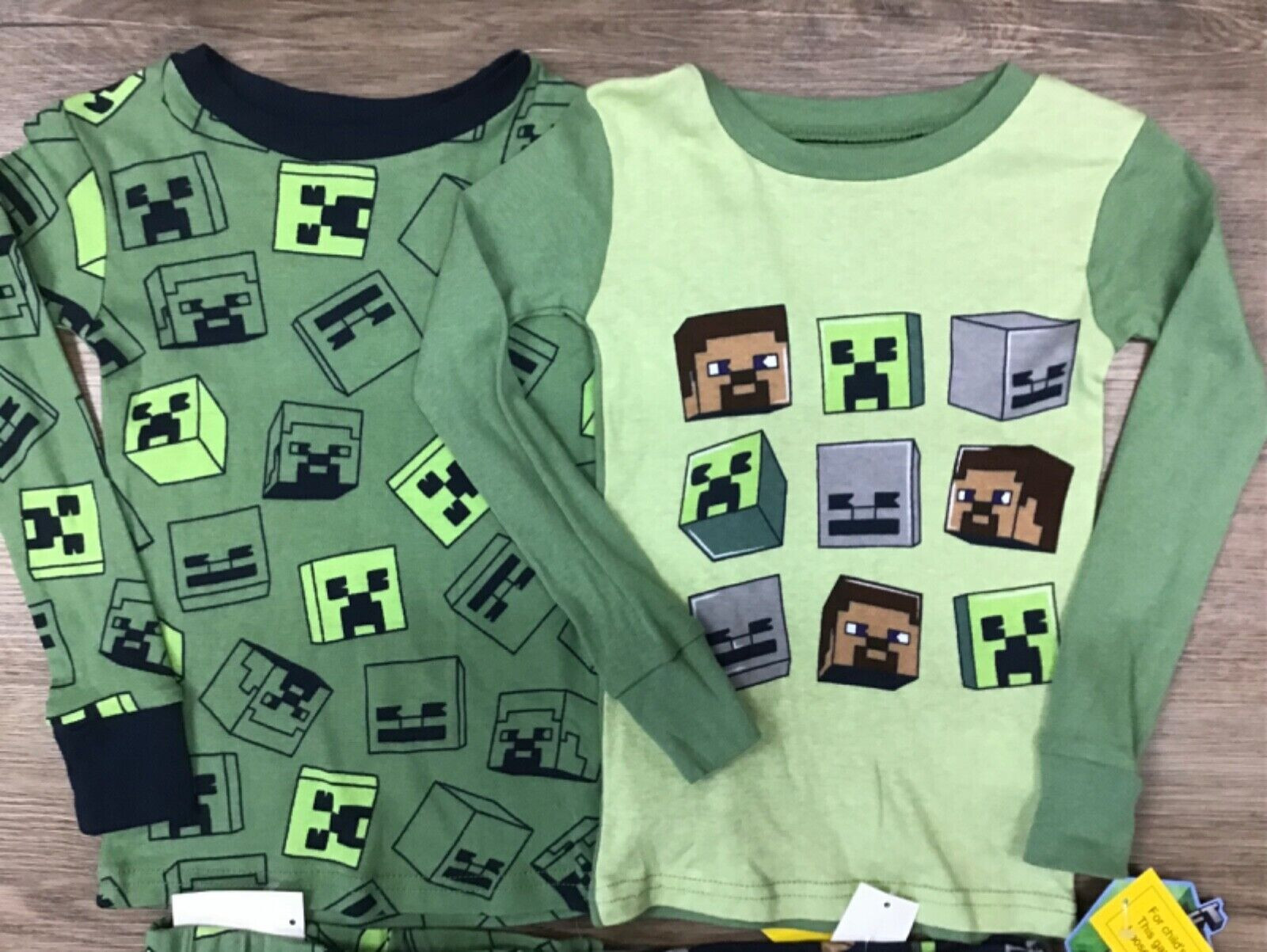 как выглядит Boys Minecraft Creeper Long Sleeve 4pc Snug Fit Cotton Pajama Set Green size 4 фото