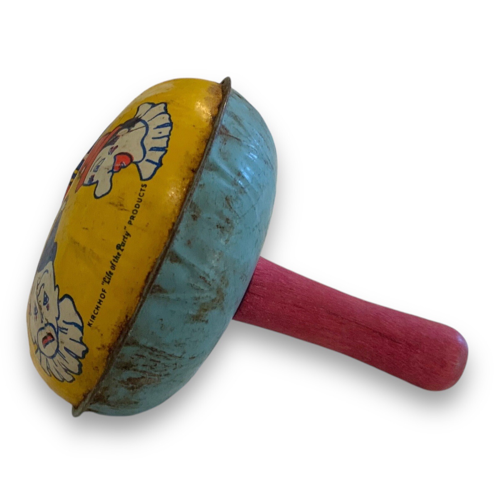 Vintage Kirchhof Noise Maker Life Of The Party Clown Tin Round Red Handle