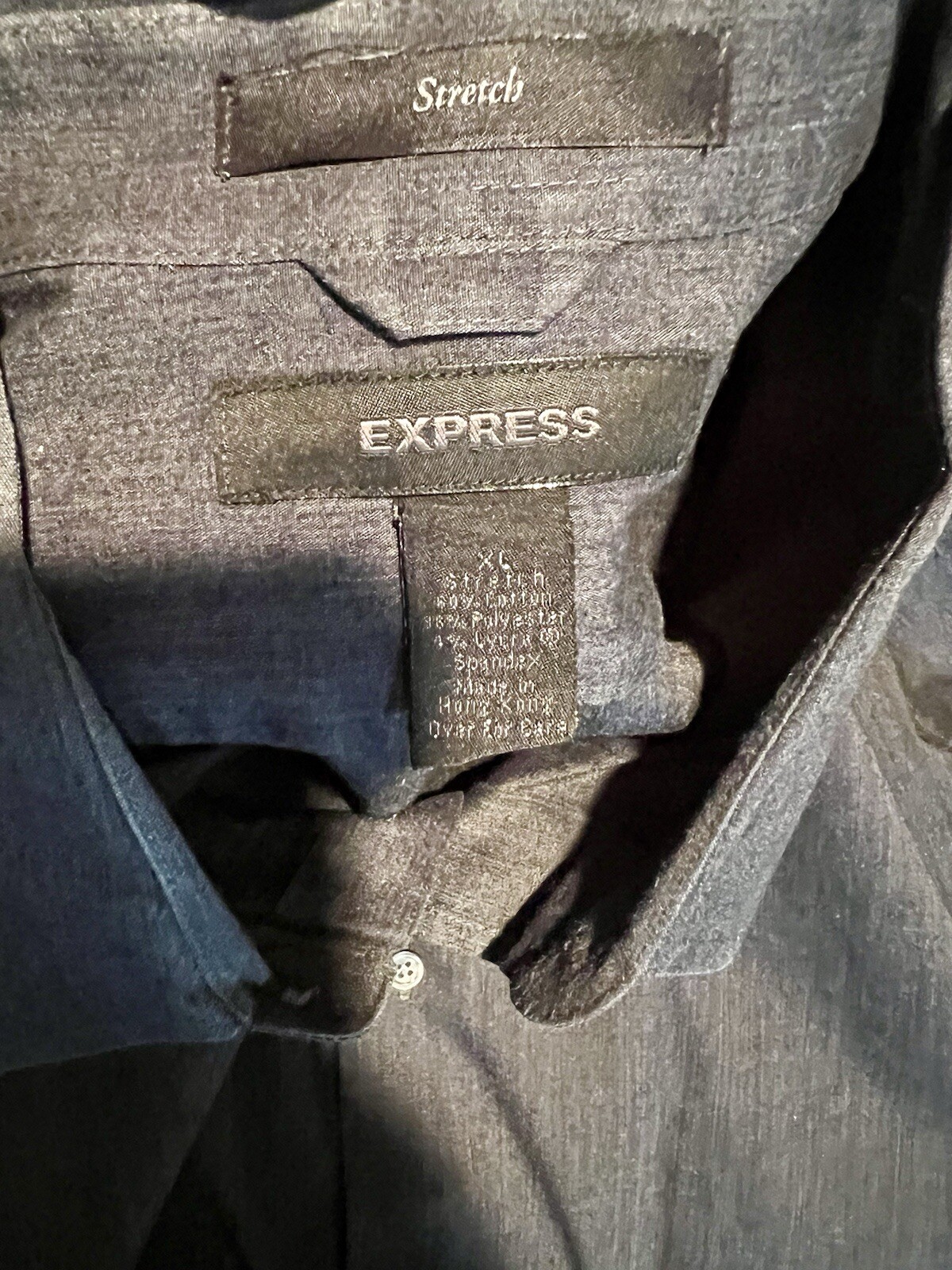 как выглядит Mens Express Stretch Charcoal Gray Button-Down Long-Sleeve Dress Shirt XL фото