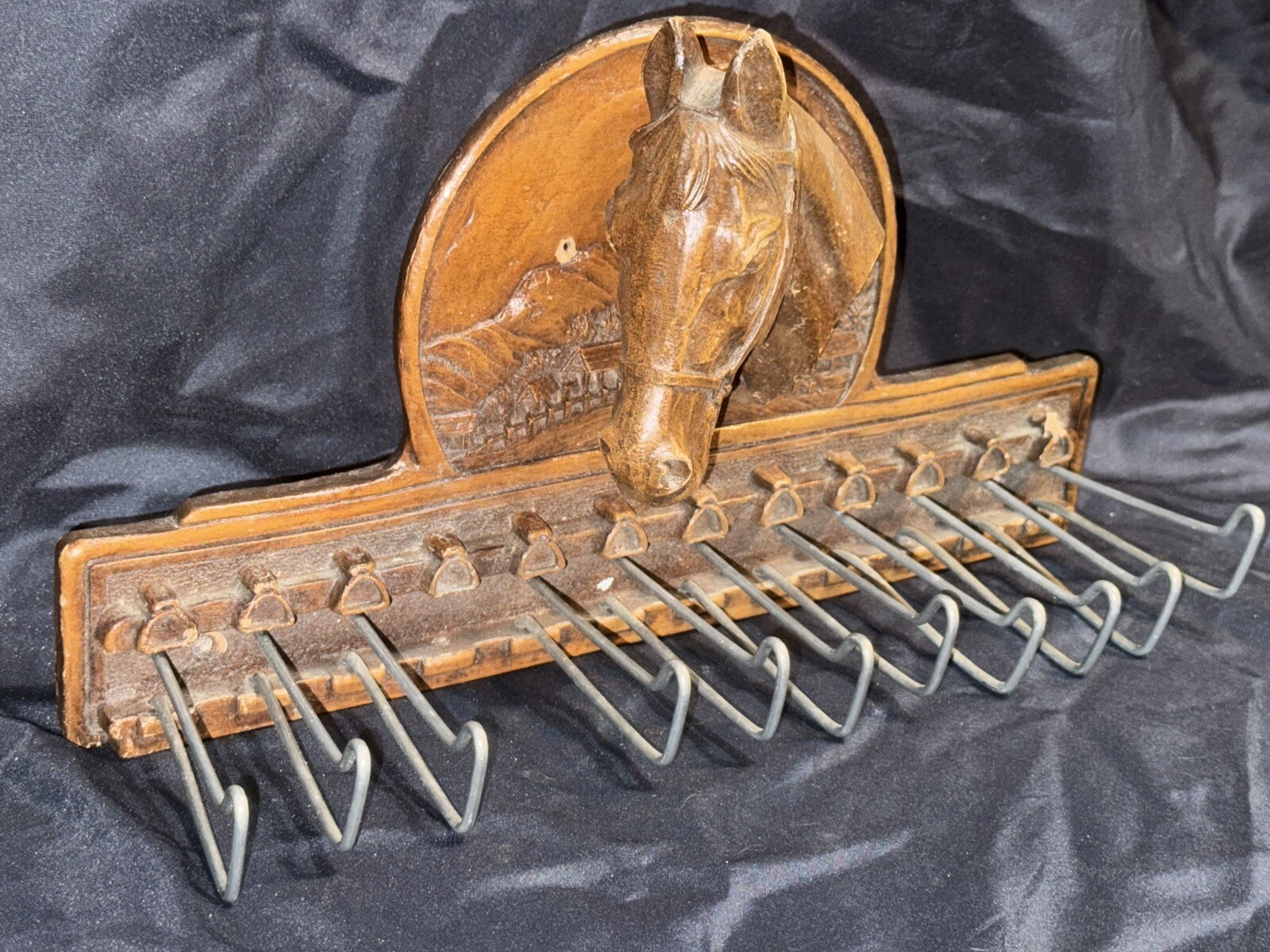 Vintage Carved Wood Syroco Wood Bandana Tie Holder Rack Horse Made in USA L1