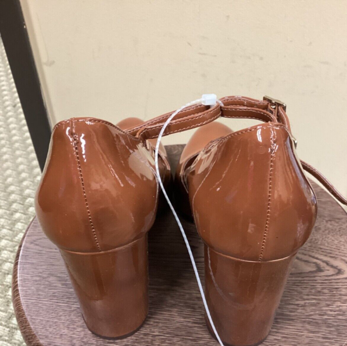 как выглядит Women NWOT "Vince Camiuto" brn patten leather mary jane type shoes. Heel 4". 10M фото