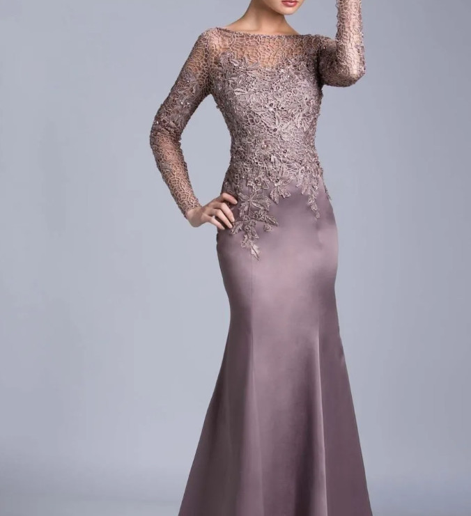 как выглядит Elegant Long Sleeves Mother Of The Bride Dresses Lace Appliques Satin Floor Leng фото