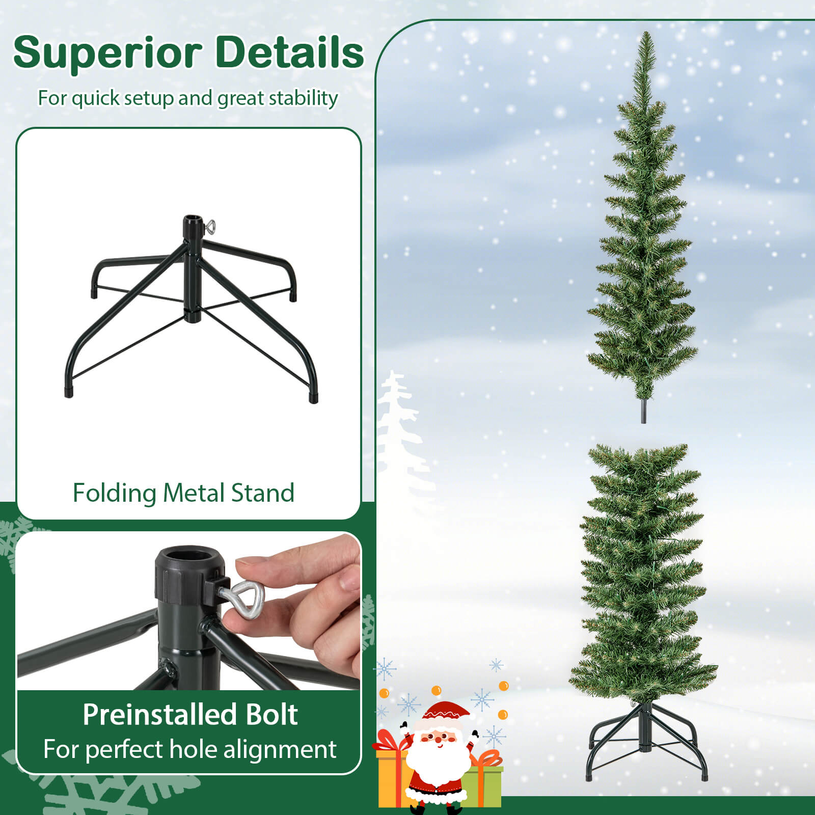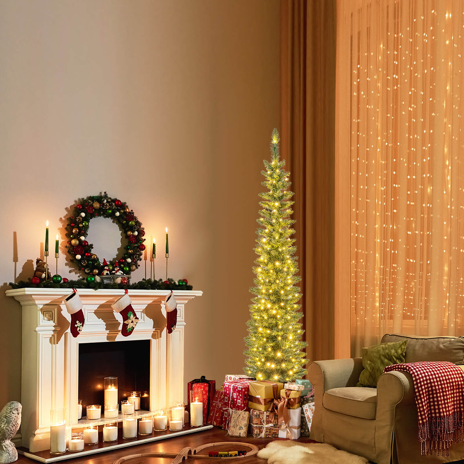 5/6/7/8/9 FT Pre-Lit Artificial Christmas Tree Slim Pencil Xmas Office Decor