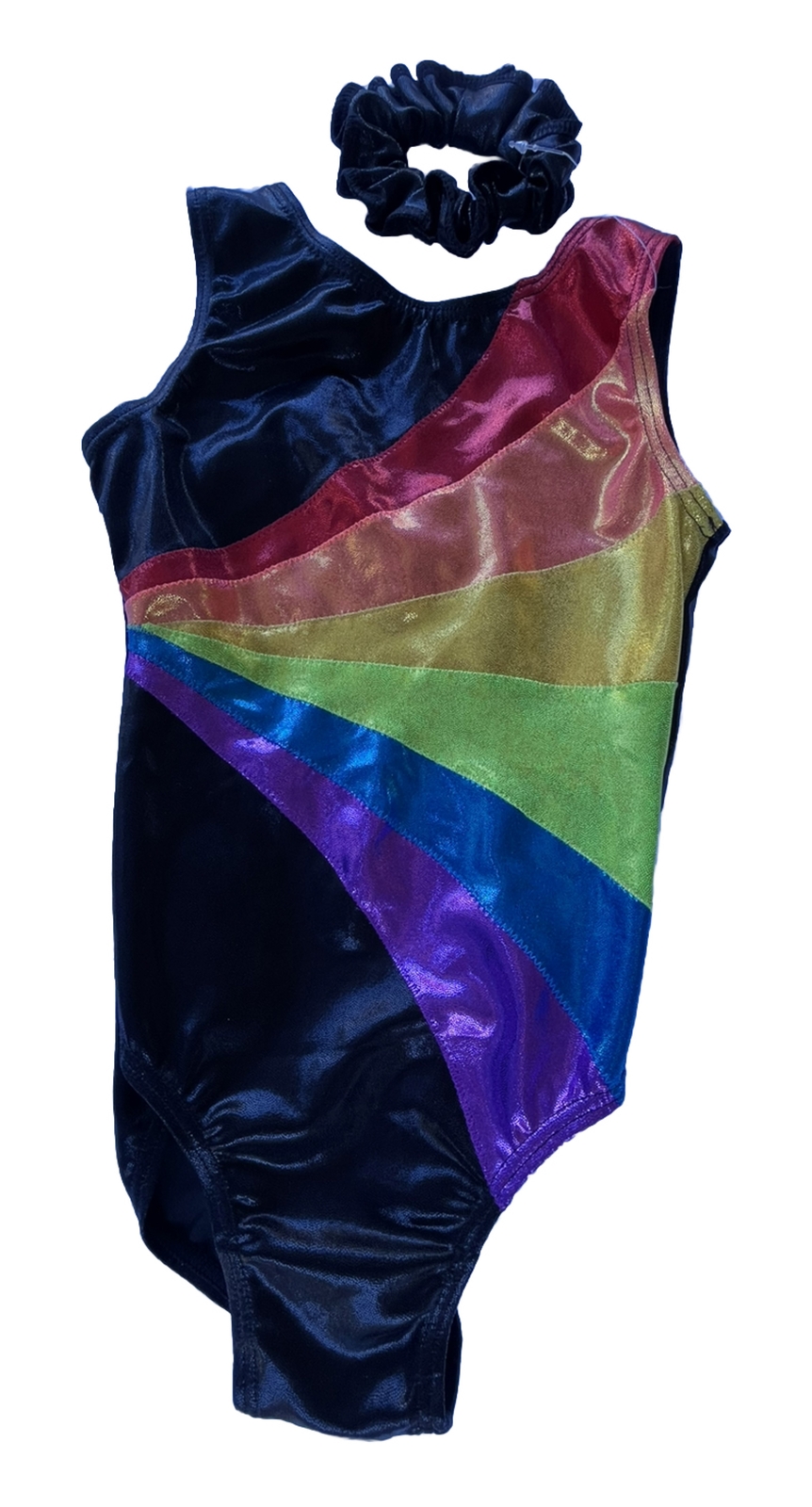 как выглядит BALERA Leotard CS Girls Small Black Rainbow Foil Metallic Dance Gymnastics NWOT фото