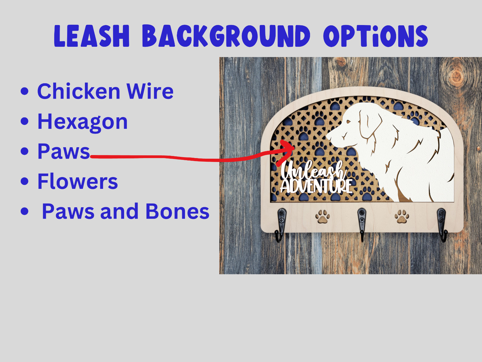 Dog Leash Hanger for Wall, Dog Leash Holder Personalized Dog Breed Leah Holder