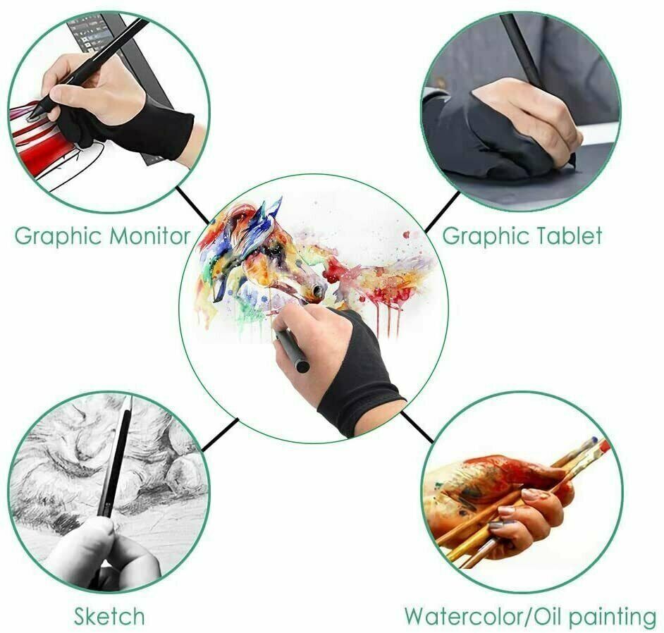 Two Finger Anti-fouling Glove Drawing Pen Graphic Tablet Pad For Artist Black