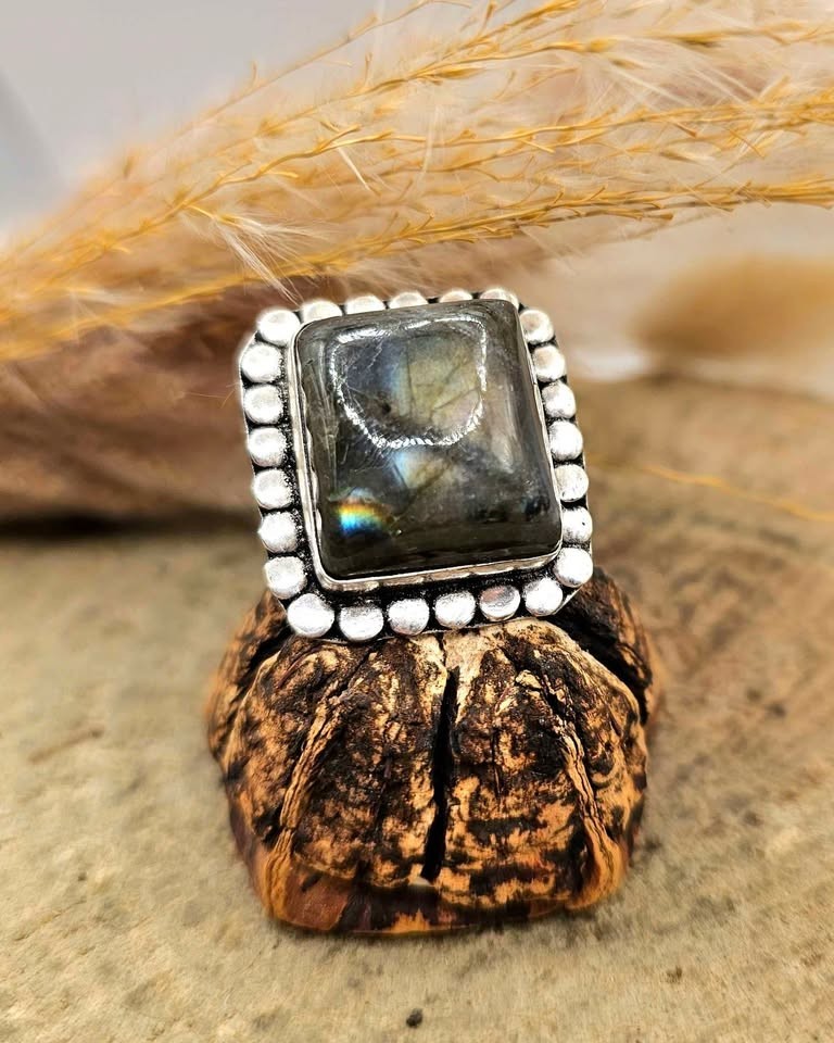 как выглядит Nature Labradorite Flashy Square 925 Shape Ring Size 10 фото