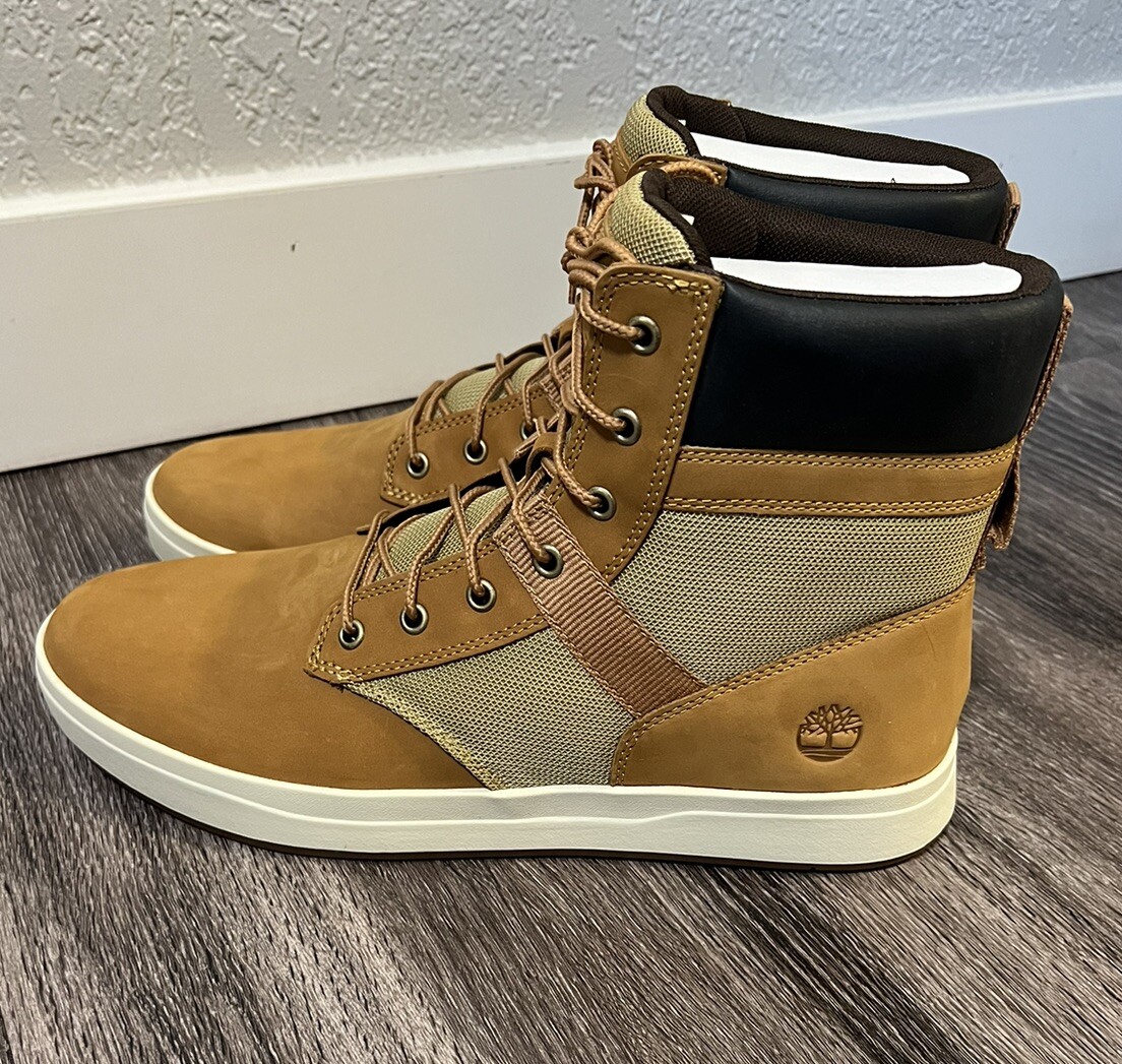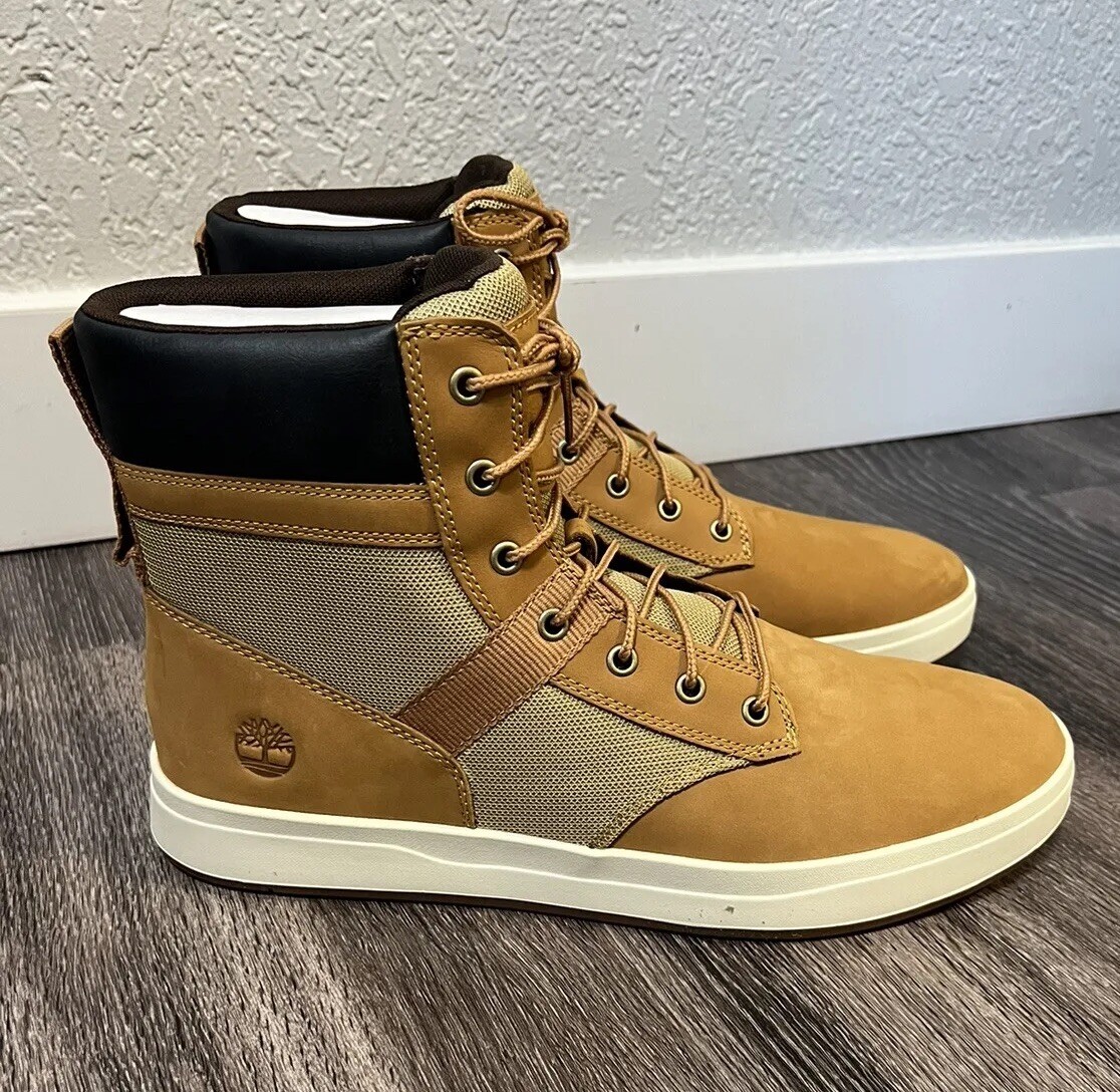 Timberland Men s 0A2HE2 231 DAVIS SQURE LEATR/ FAB MID WHEAT NUBUCK BOOT 12