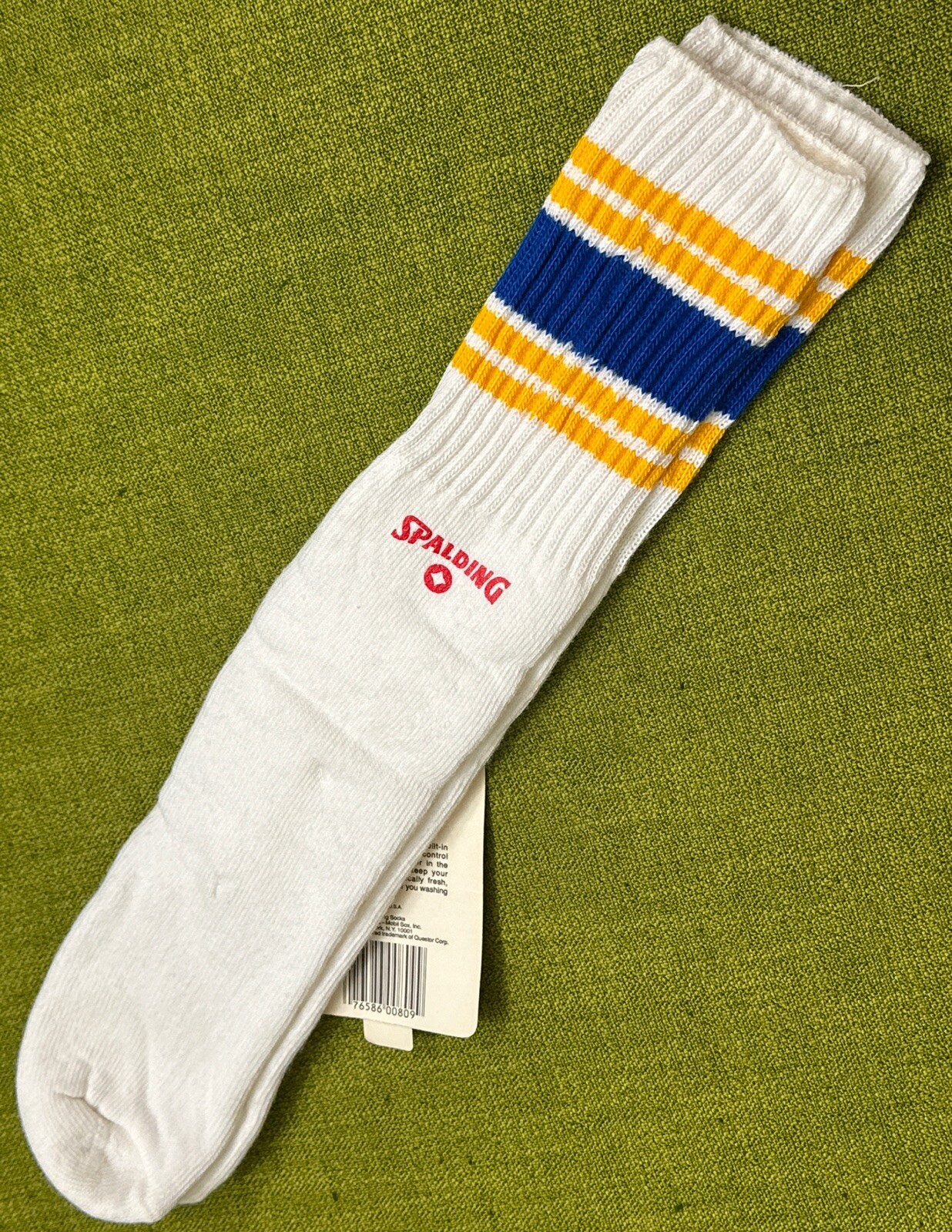 NOS Vintage 1970s SPALDING White Blue Gold EXTRA LONG TUBE Socks FITS SIZE 8-11