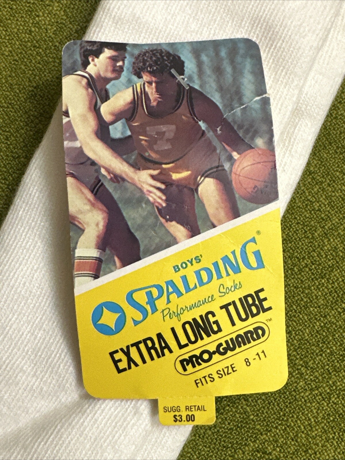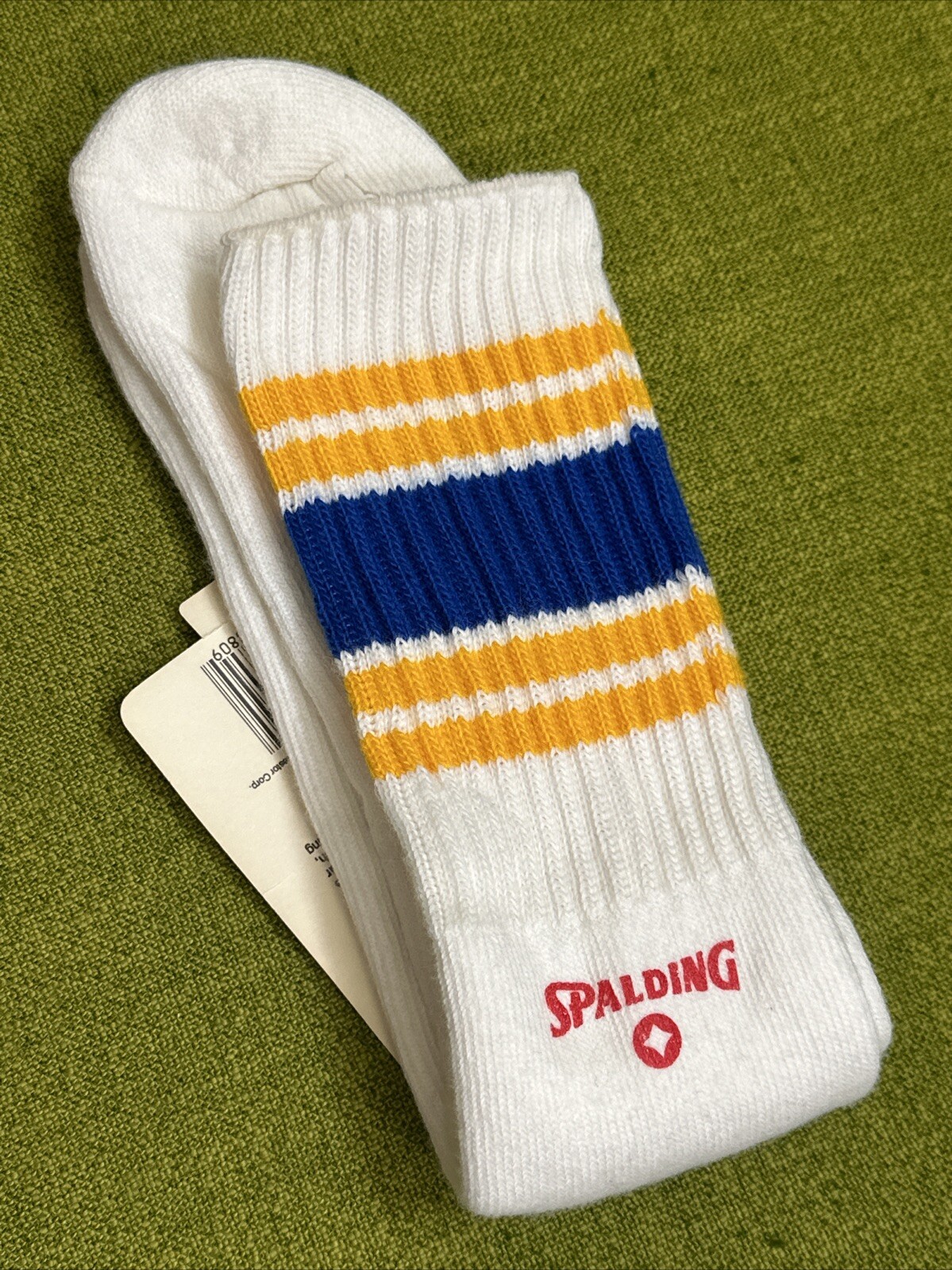 как выглядит NOS Vintage 1970s SPALDING White Blue Gold EXTRA LONG TUBE Socks FITS SIZE 8-11 фото