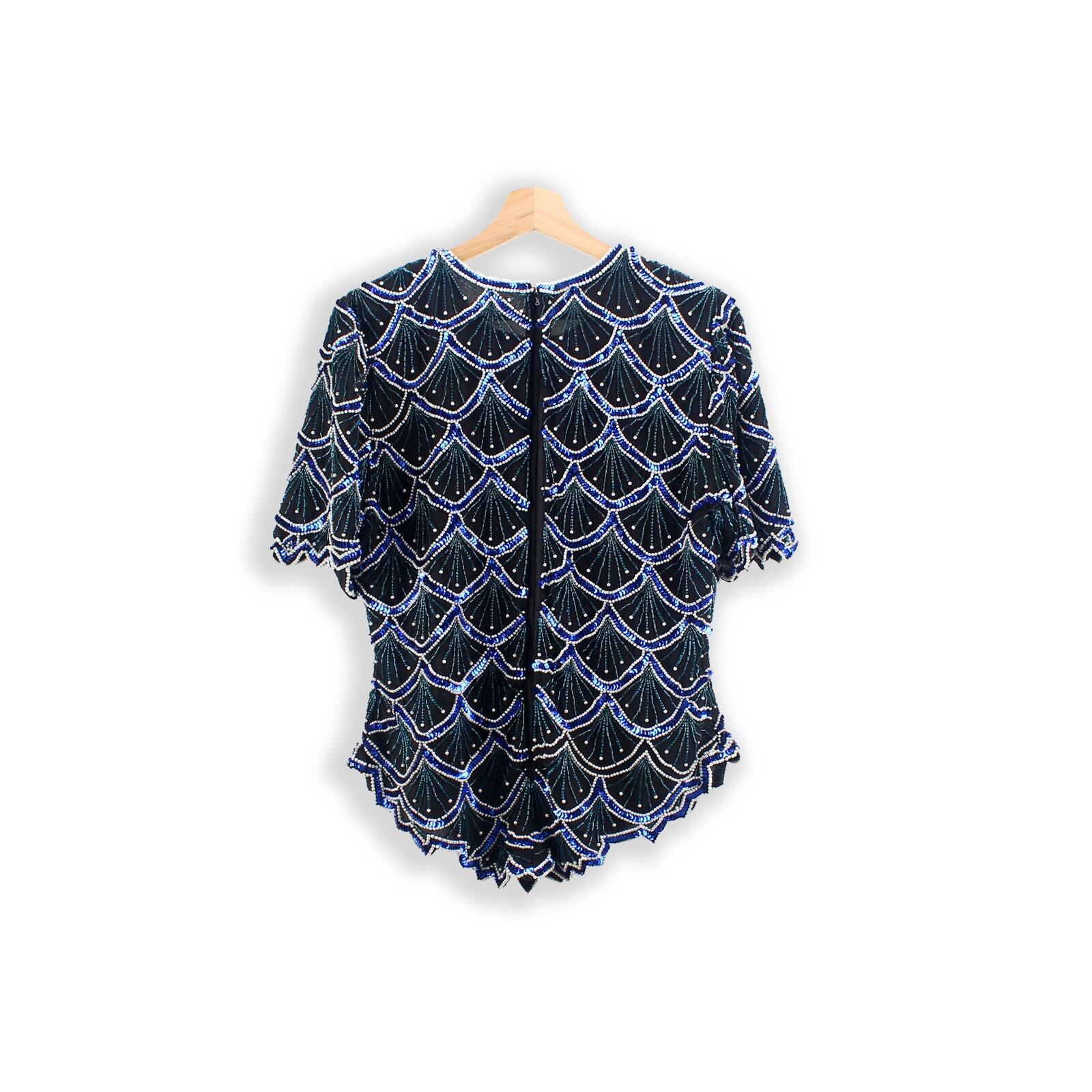 как выглядит 70s Vintage Top - Scallop Beaded Party Shirt - 1970s Fashion - L фото