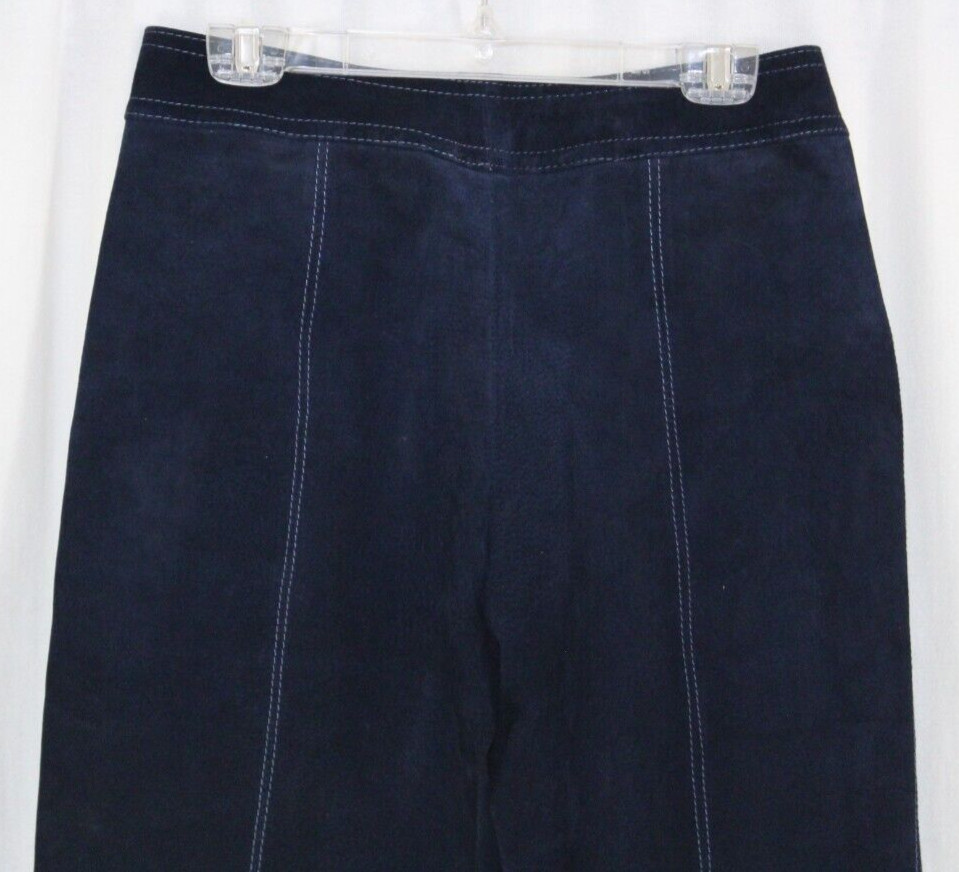 как выглядит Vintage Francine by Jerry Feder Blue Suede Wide Leg Raw Hem Pants Womens 29" фото