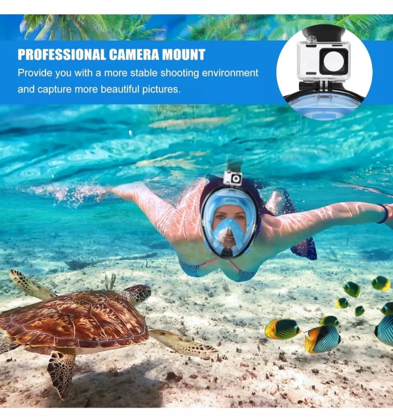 Snorkel Mask Full Face Camera Mount Degree Panoramic View Gear Adults Swimming.