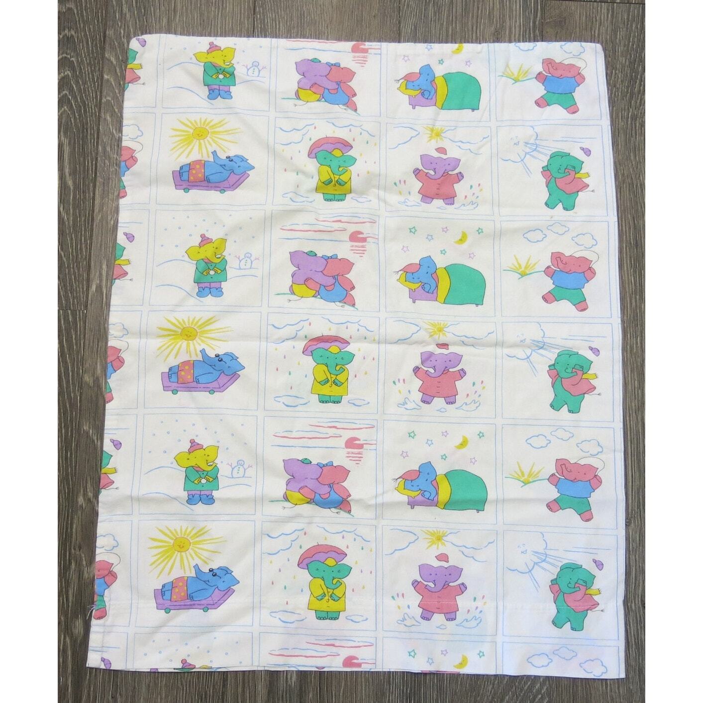 как выглядит Vintage BABAR THE ELEPHANT Pillow Case Sham Set Cartoon French Jean de Brunhoff фото