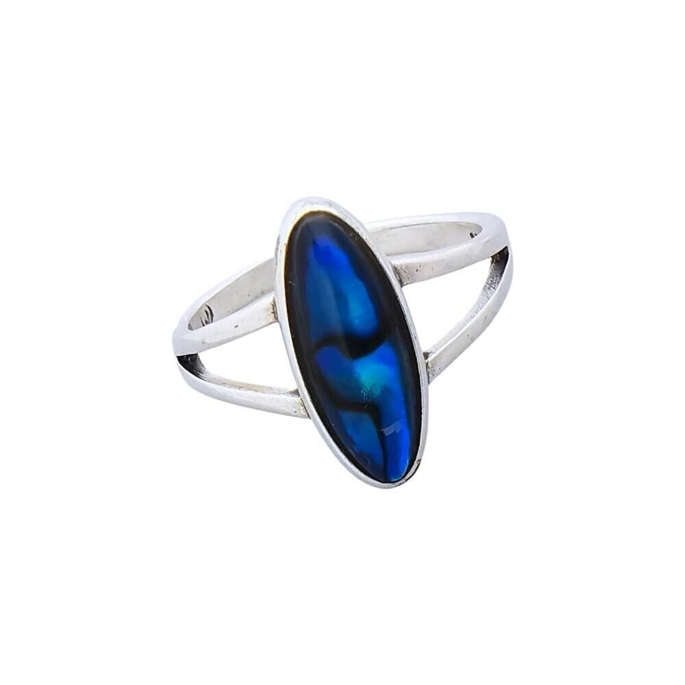 Vintage 1980s Sterling Silver Oval Abalone Inlay Ring with Three-Prong Band
