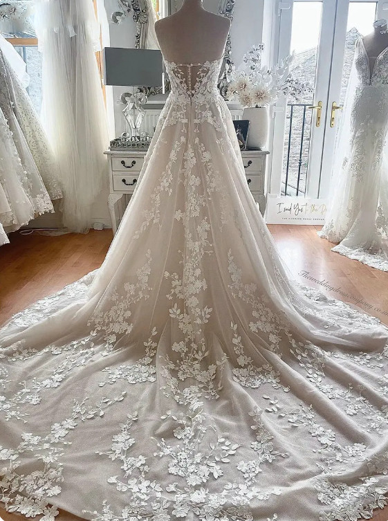 как выглядит Bohemian Sweetheart Wedding Dresses with Lace Appliques Court Train Bridal Gowns фото