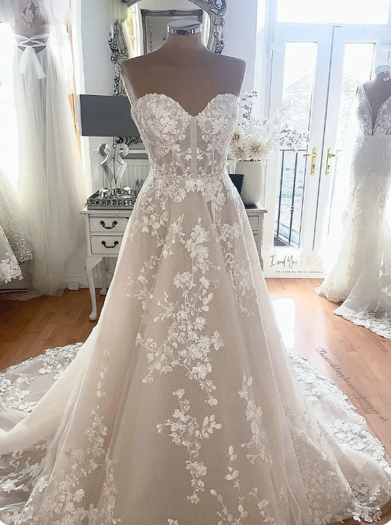 Bohemian Sweetheart Wedding Dresses with Lace Appliques Court Train Bridal Gowns