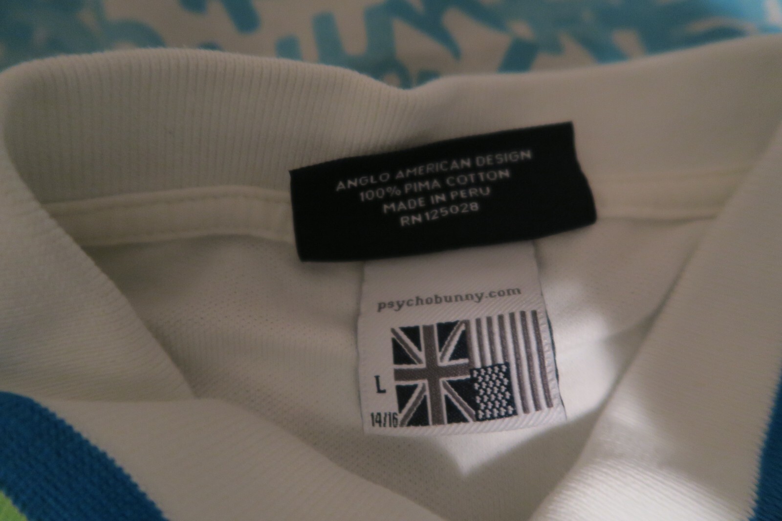 как выглядит Psycho Bunny Griston Neon Tipped Polo White/Neon Polo Boys Size 14/16 60 фото