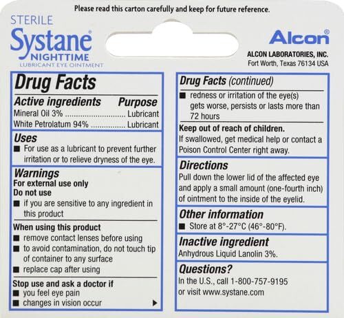 Systane Nighttime Lubricant Eye Ointment 0.12Oz Doctor Recommended Dry Eye Re...