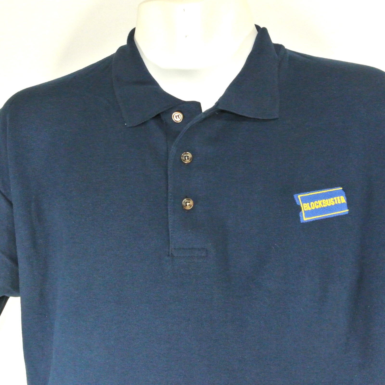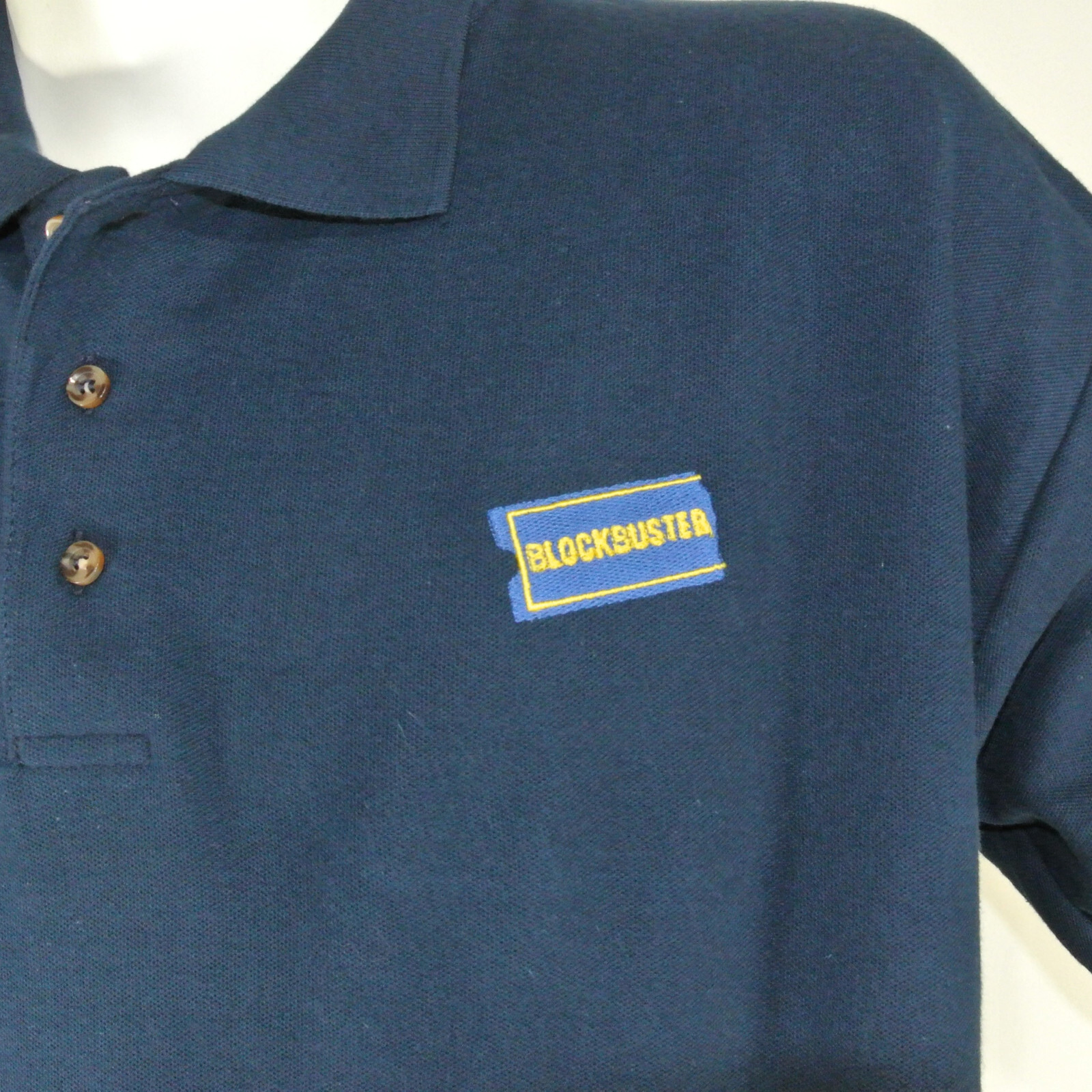 BLOCKBUSTER VIDEO Employee Uniform Polo Shirt Navy Blue Size L Large NOS NEW