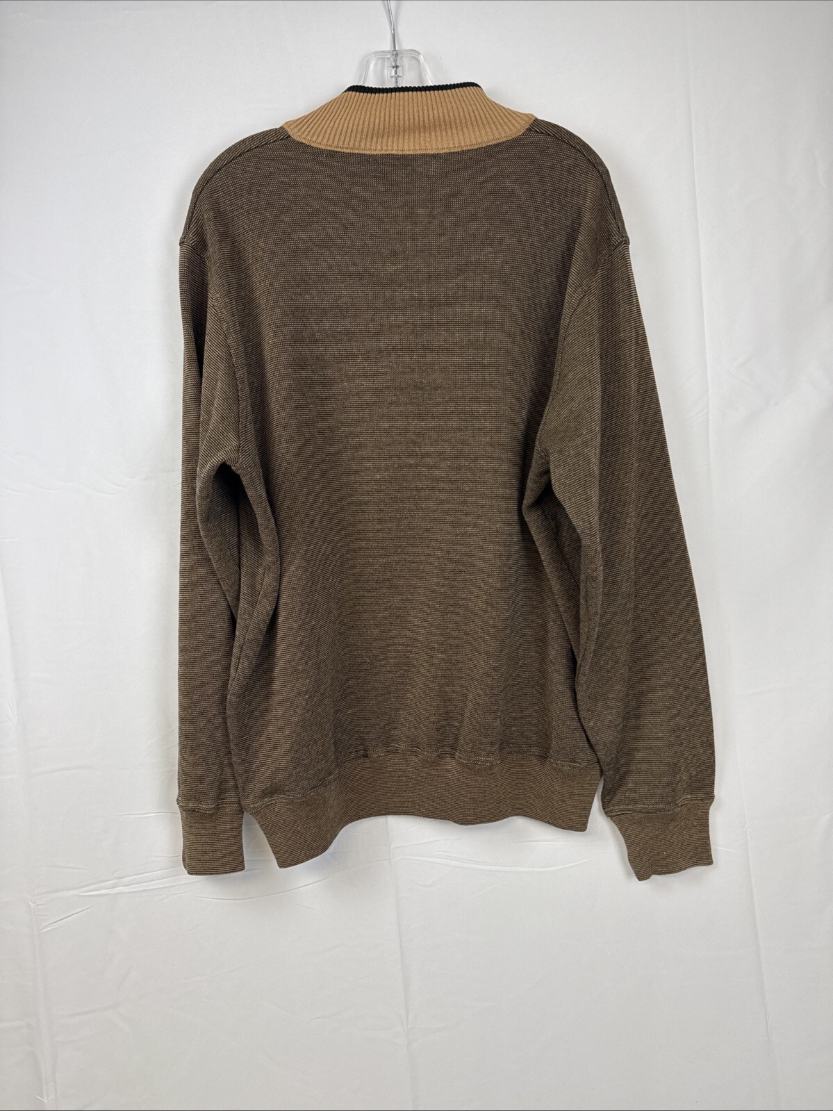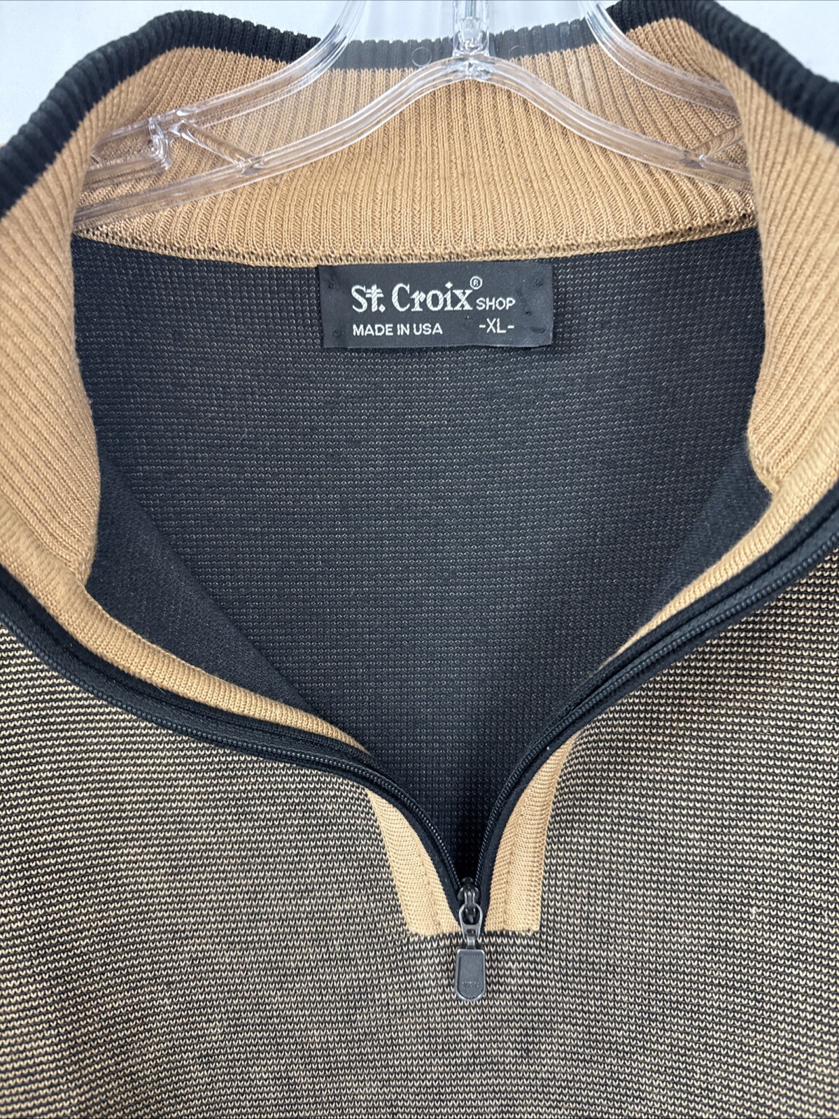 VTG St. Croix Shop Brown And Tan 1/4 Zip Cotton Poly Sweater USA Mens Size XL