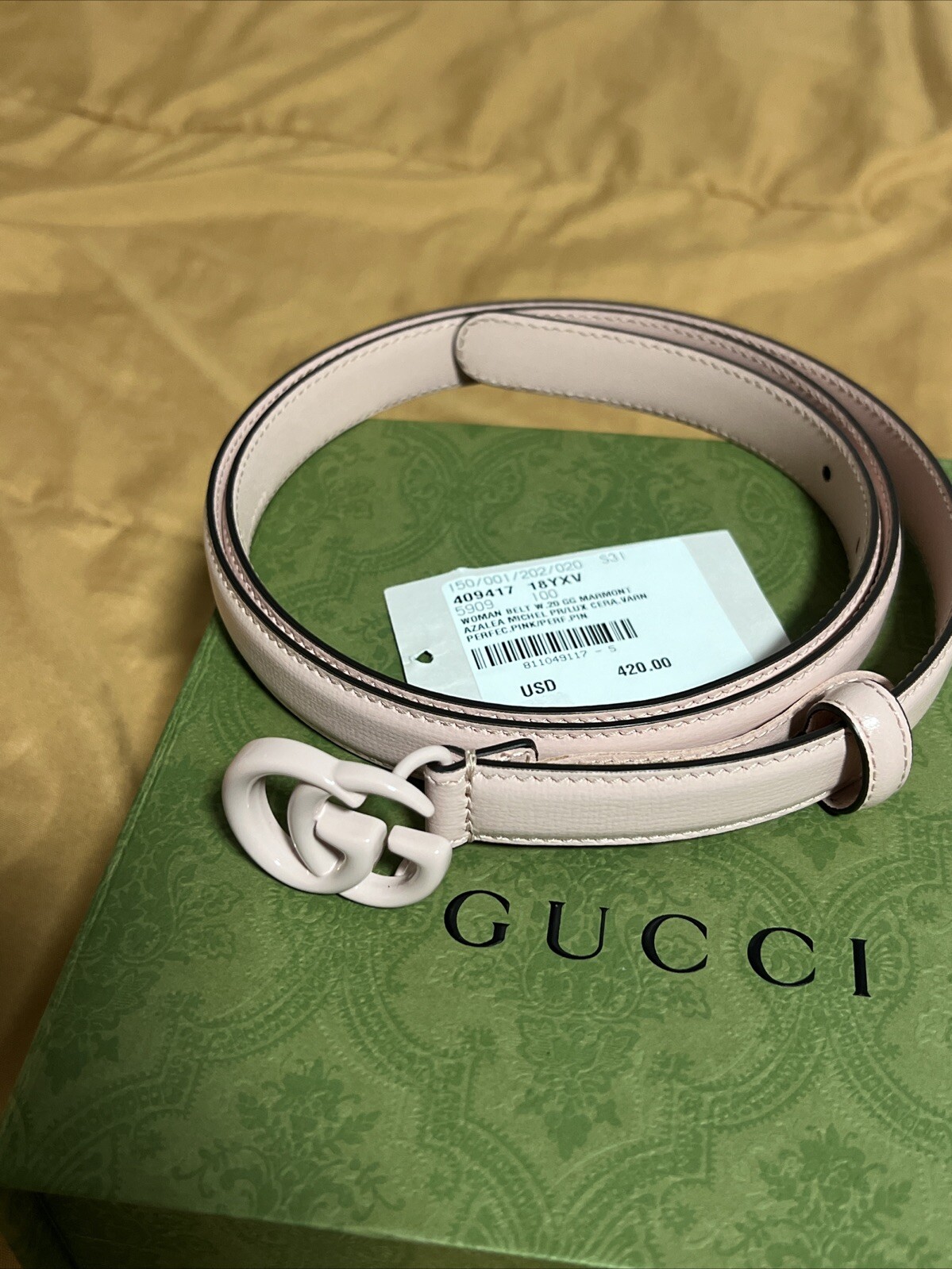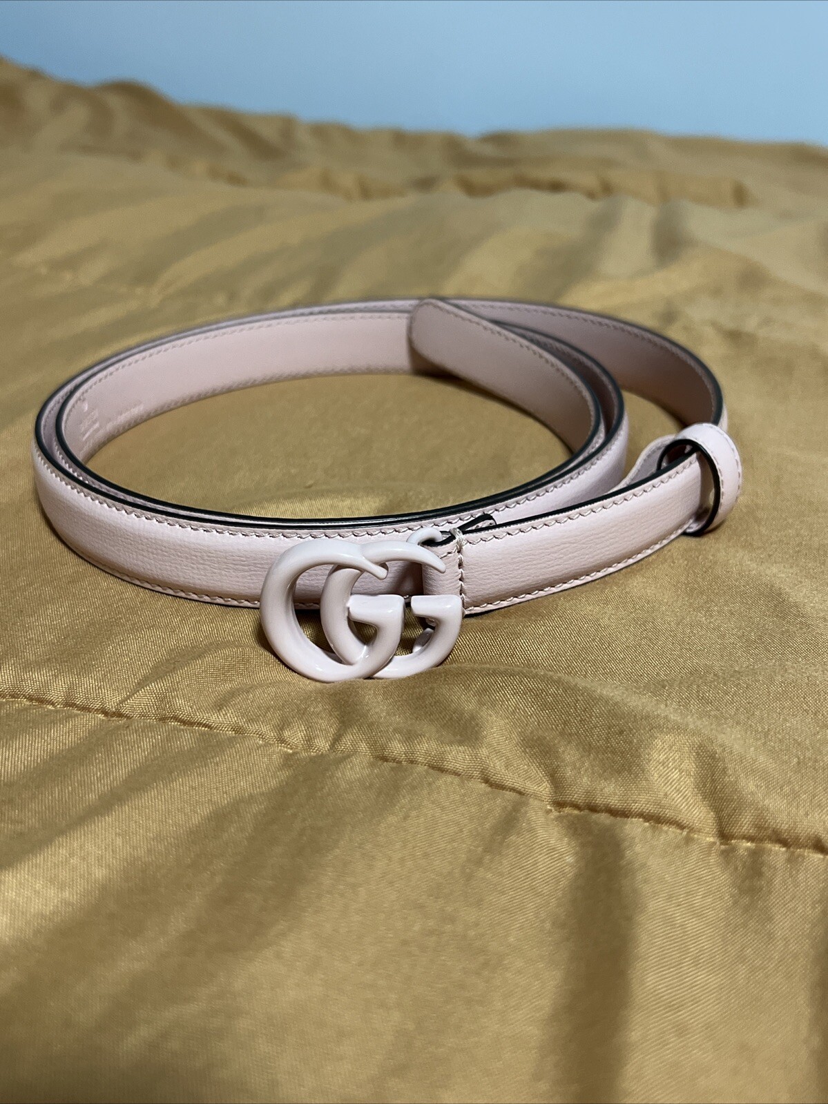 как выглядит Gucci Azalea Calfskin Enamel Monochrome Double GG 20mm Belt 100 Pink Color фото
