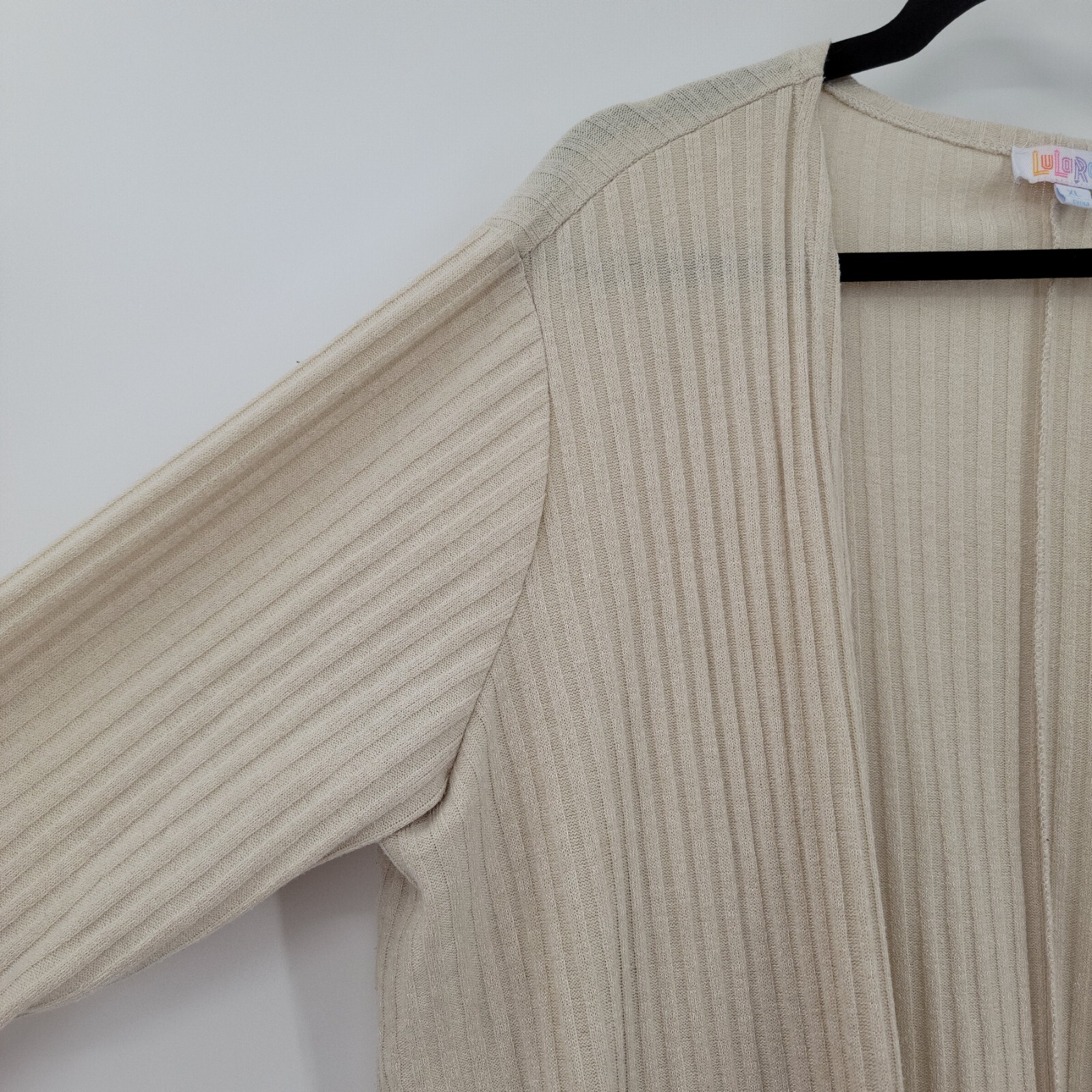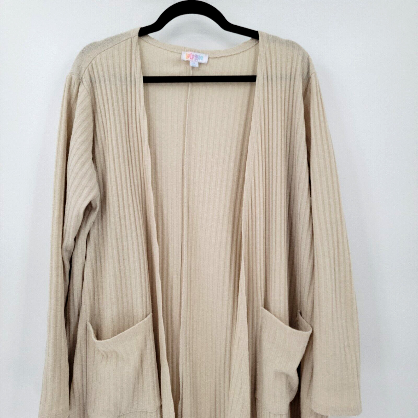 как выглядит LulaRoe Woman s XL Caroline Cream Long Open Front Cardigan W/ Pockets фото