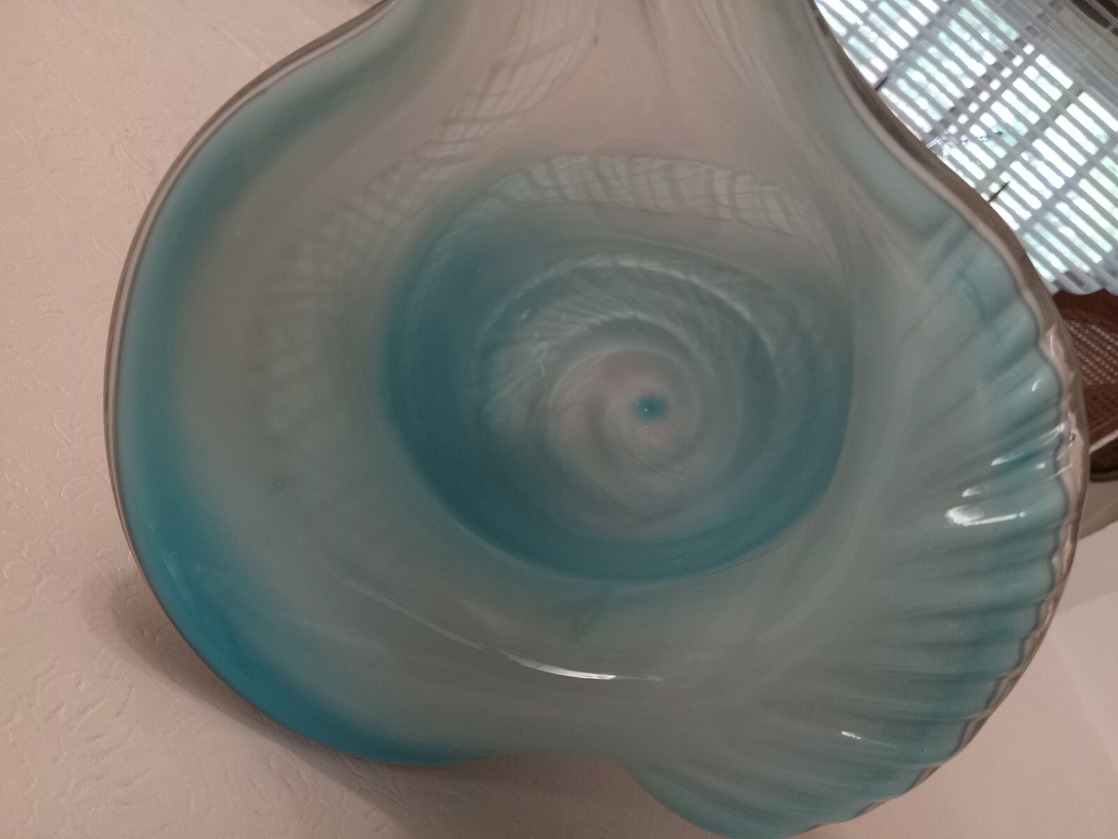как выглядит Lg Hand Blown Glass Conch Shell, Sculpture Table Top, Deco Art, Blue, Sand,12" L фото