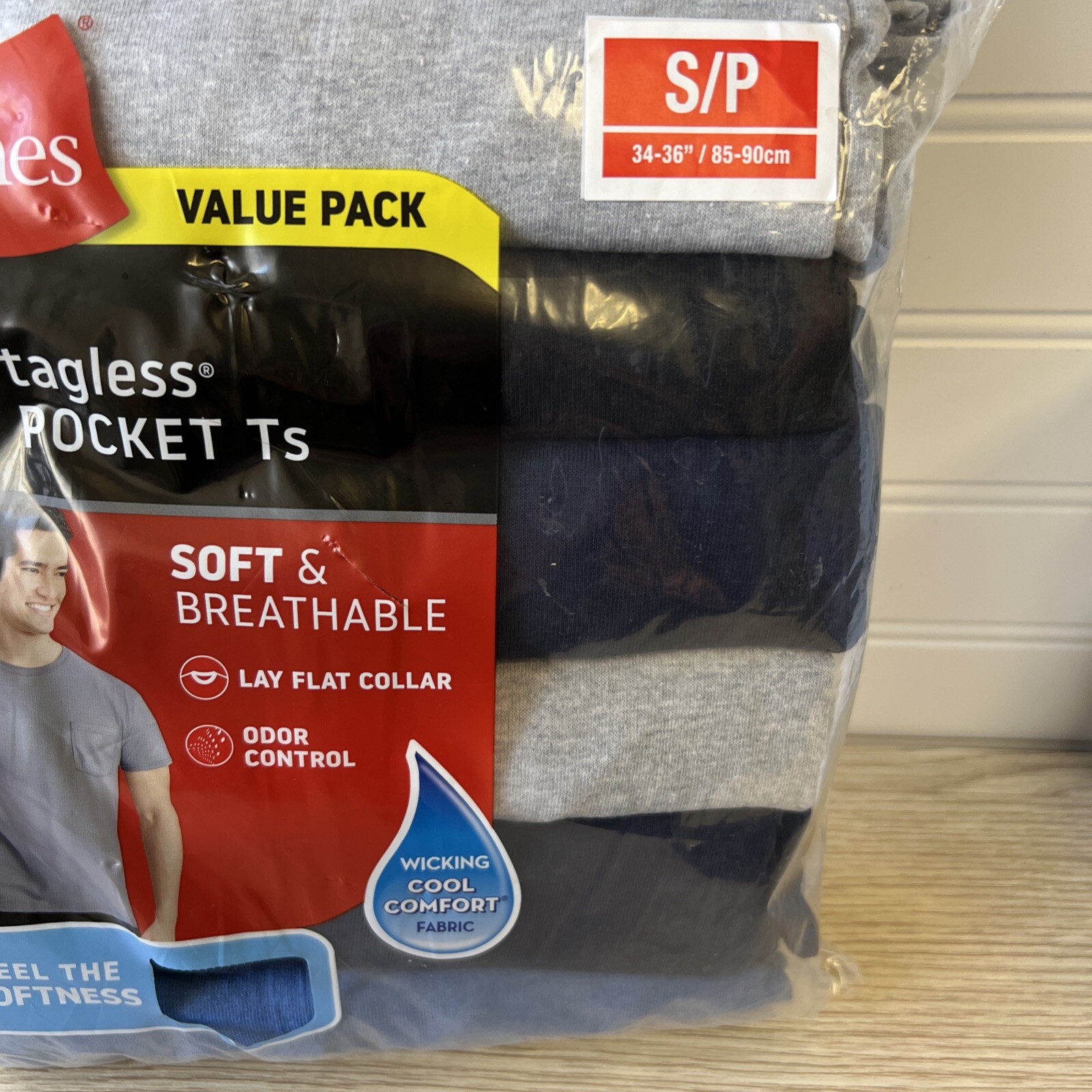 как выглядит 6 Pack Hanes Mens Value Pack Assorted Pocket T-Shirt Undershirts Size S 34"-36" фото