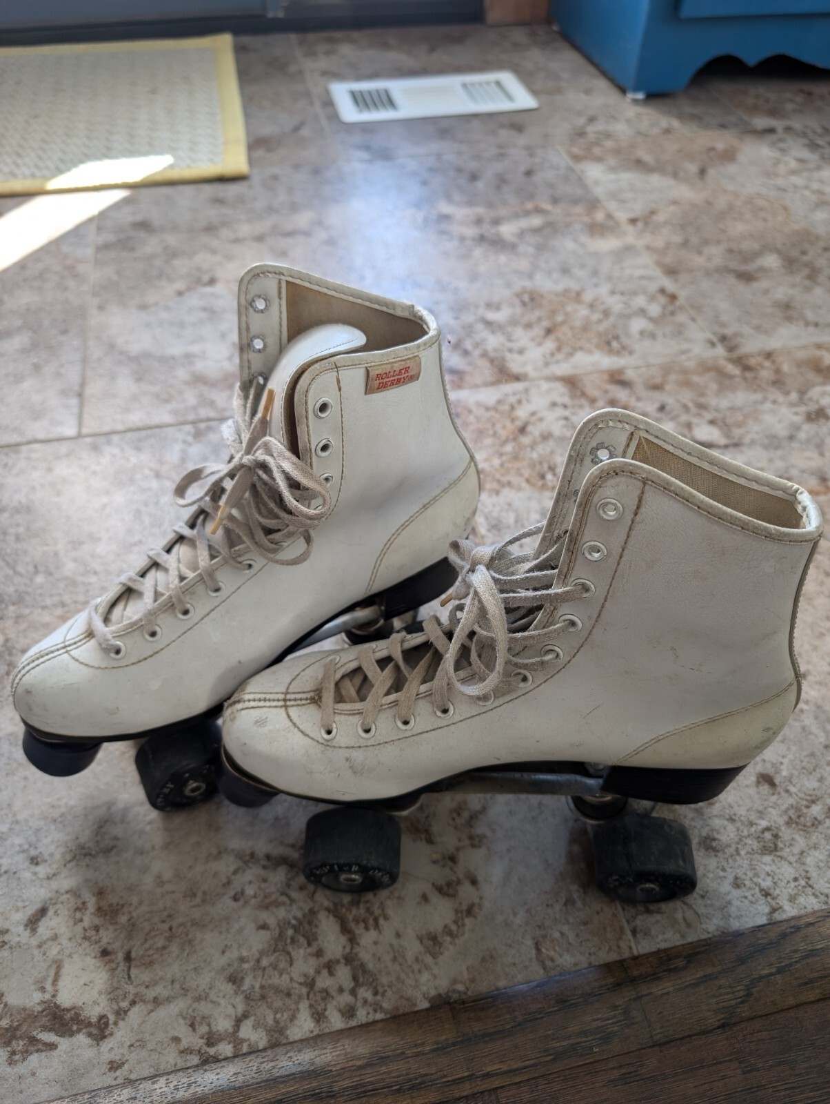 Vtg Chicago Roller Skates Roller Derby Women's Size 9 White Leather Derby Hyde