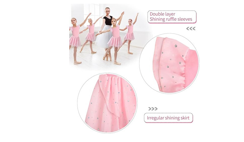 как выглядит MOLLDAN Girls Dance Leotards for Ballet Dress Shiny Skirt Ruffle Sleeve, L фото