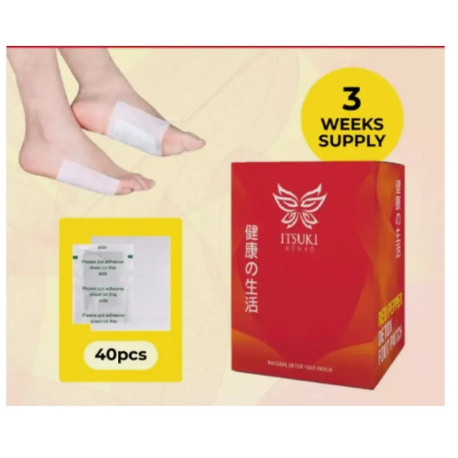 Itsuki Kenko Red Pepper Detox Foot Patch Herbal Detoxifying 40Pcs Per Box