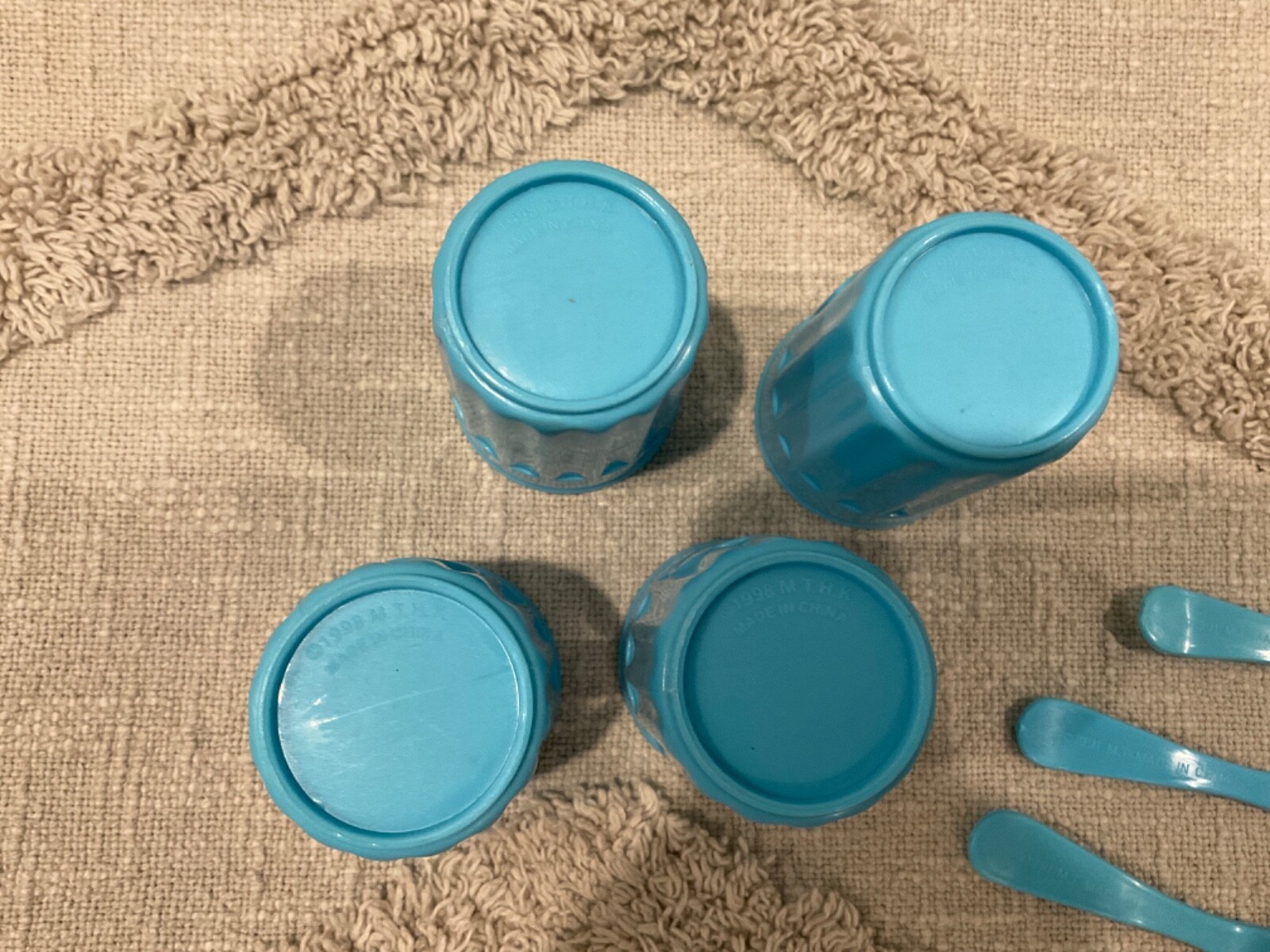 как выглядит VINTAGE 1990s PRETEND PLAY BLUE PLASTIC REPLACEMENT FORKS, SPOONS, CUPS, KNIFE фото