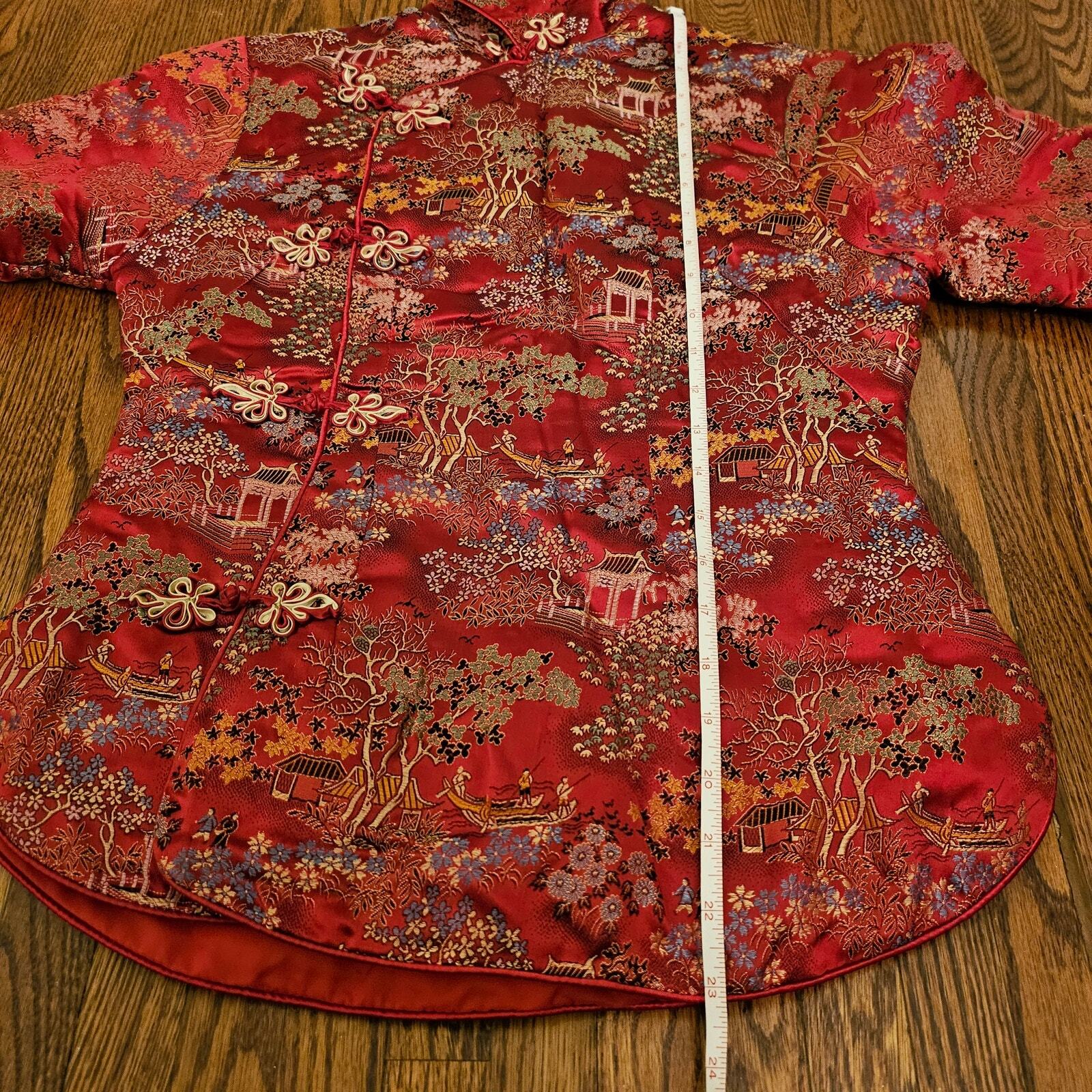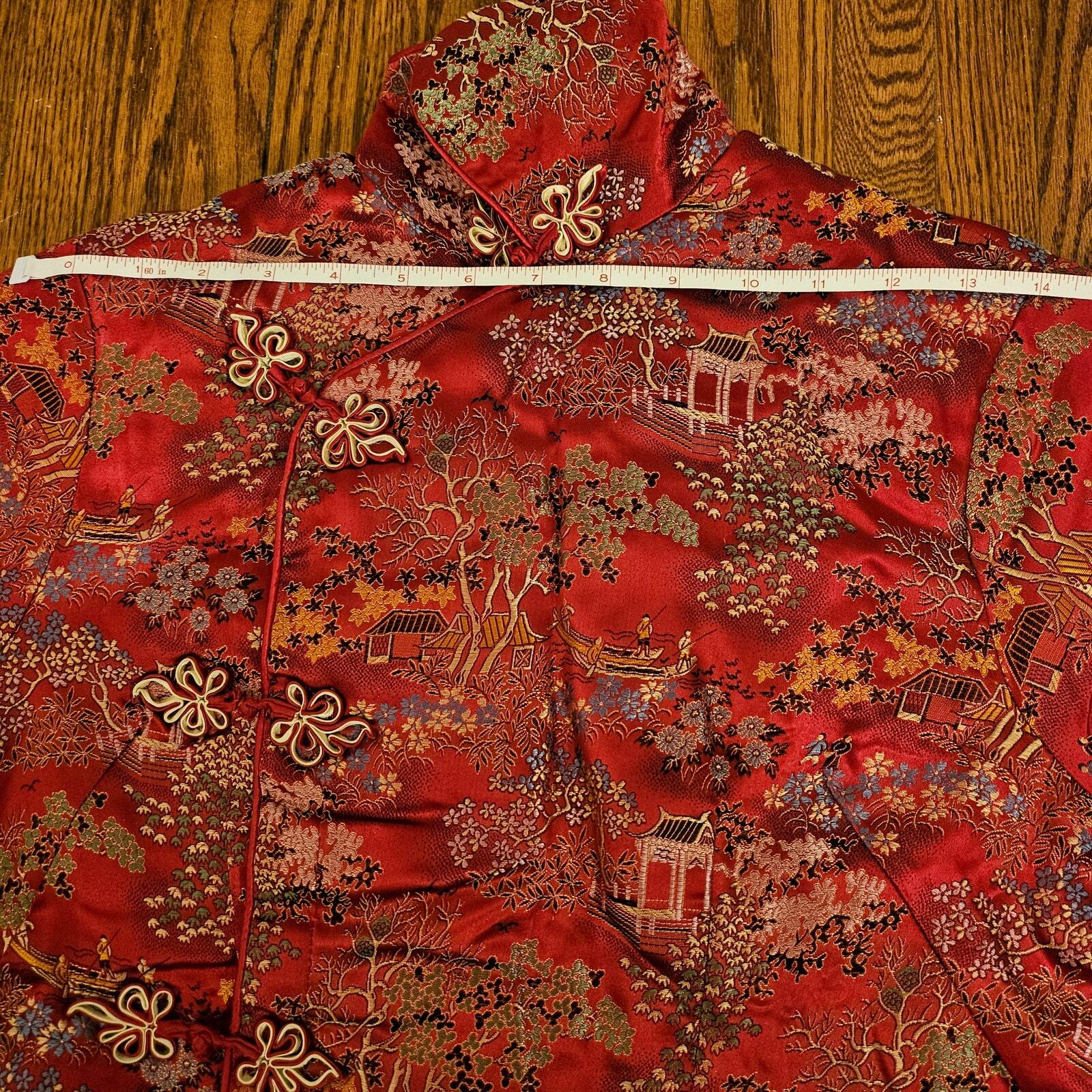 как выглядит Chinese traditional frog button jacket childrens girls XL embroidered satin фото