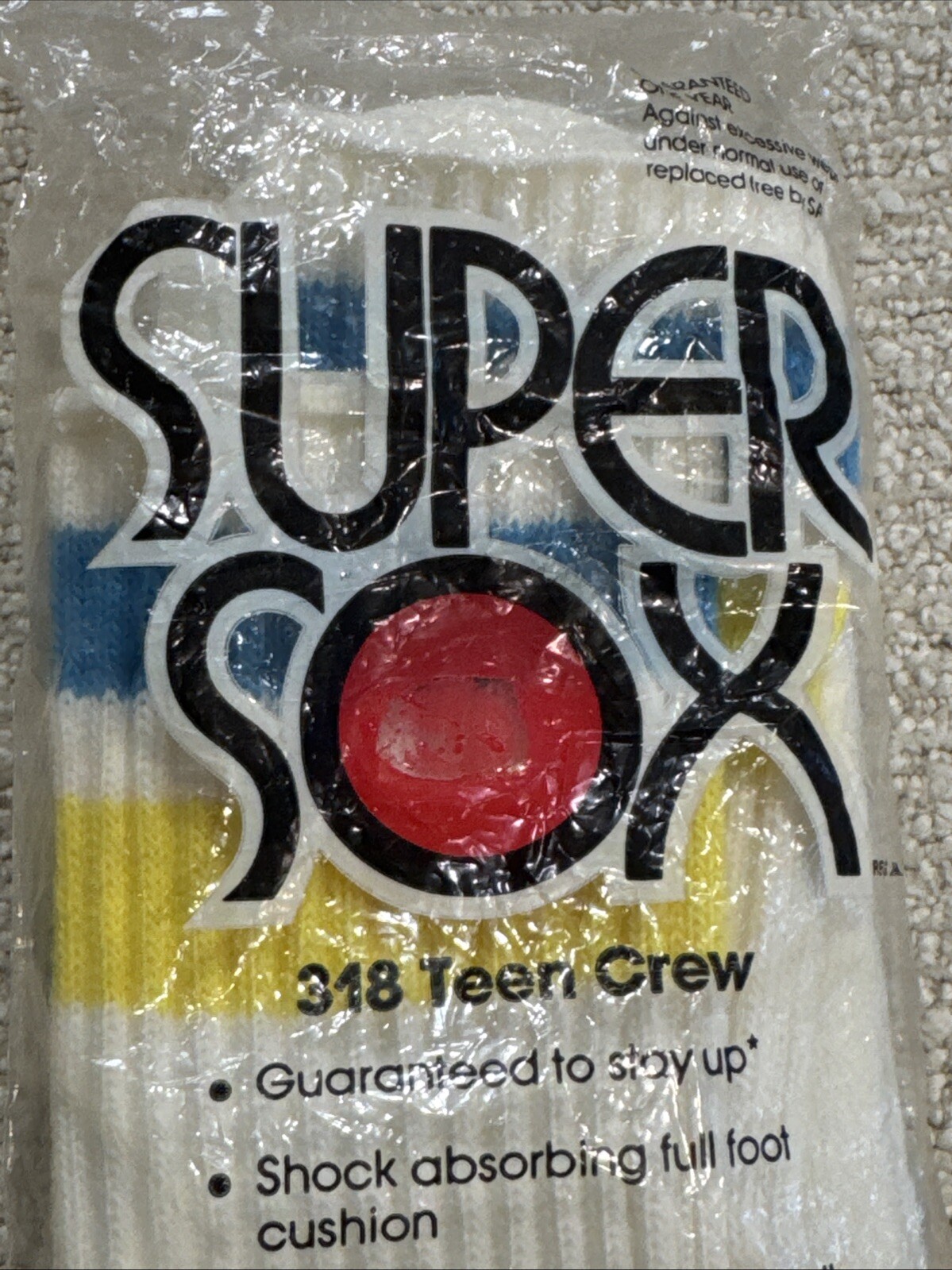 VTG 80s SAI SUPER SOX Striped 318 Teen Crew Tube Socks Orlon Nylon 4-10.5 / 3-9