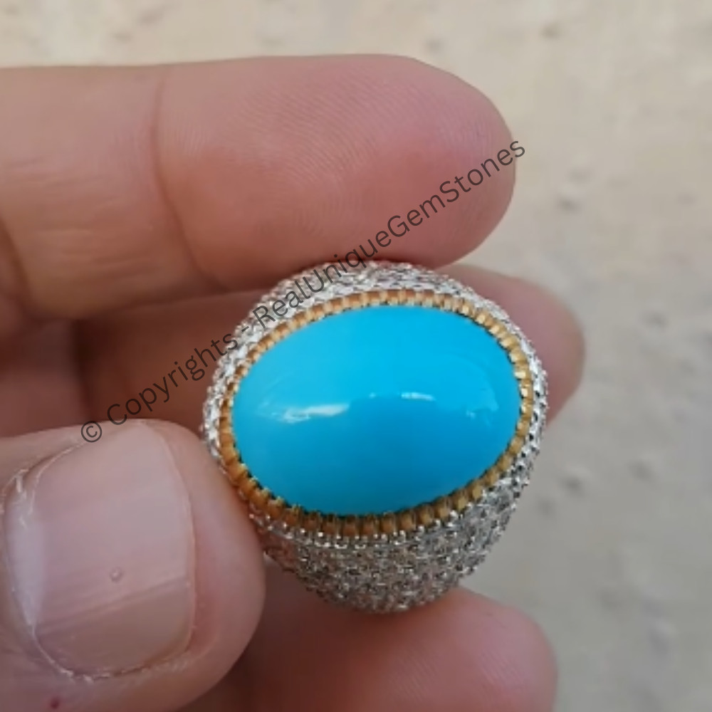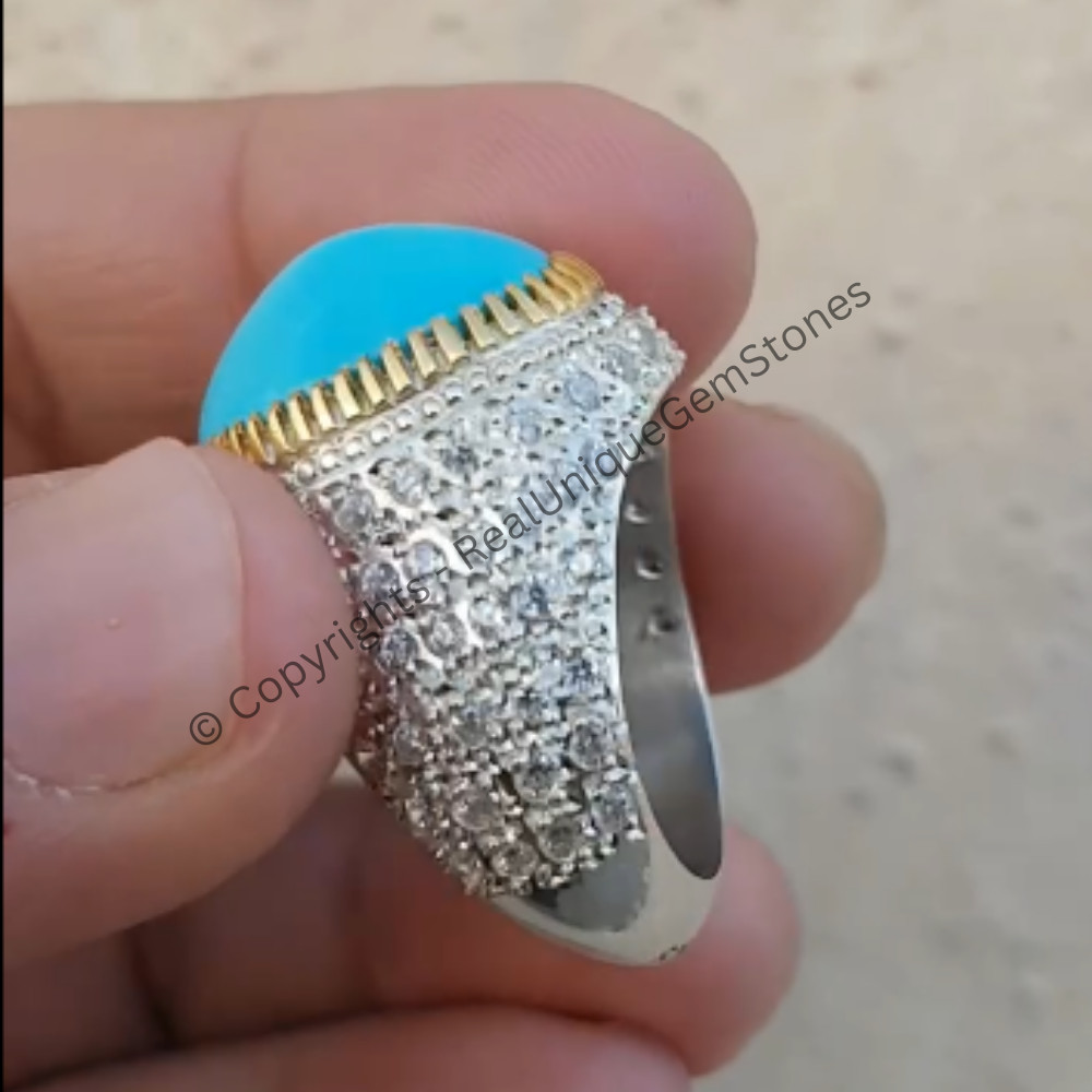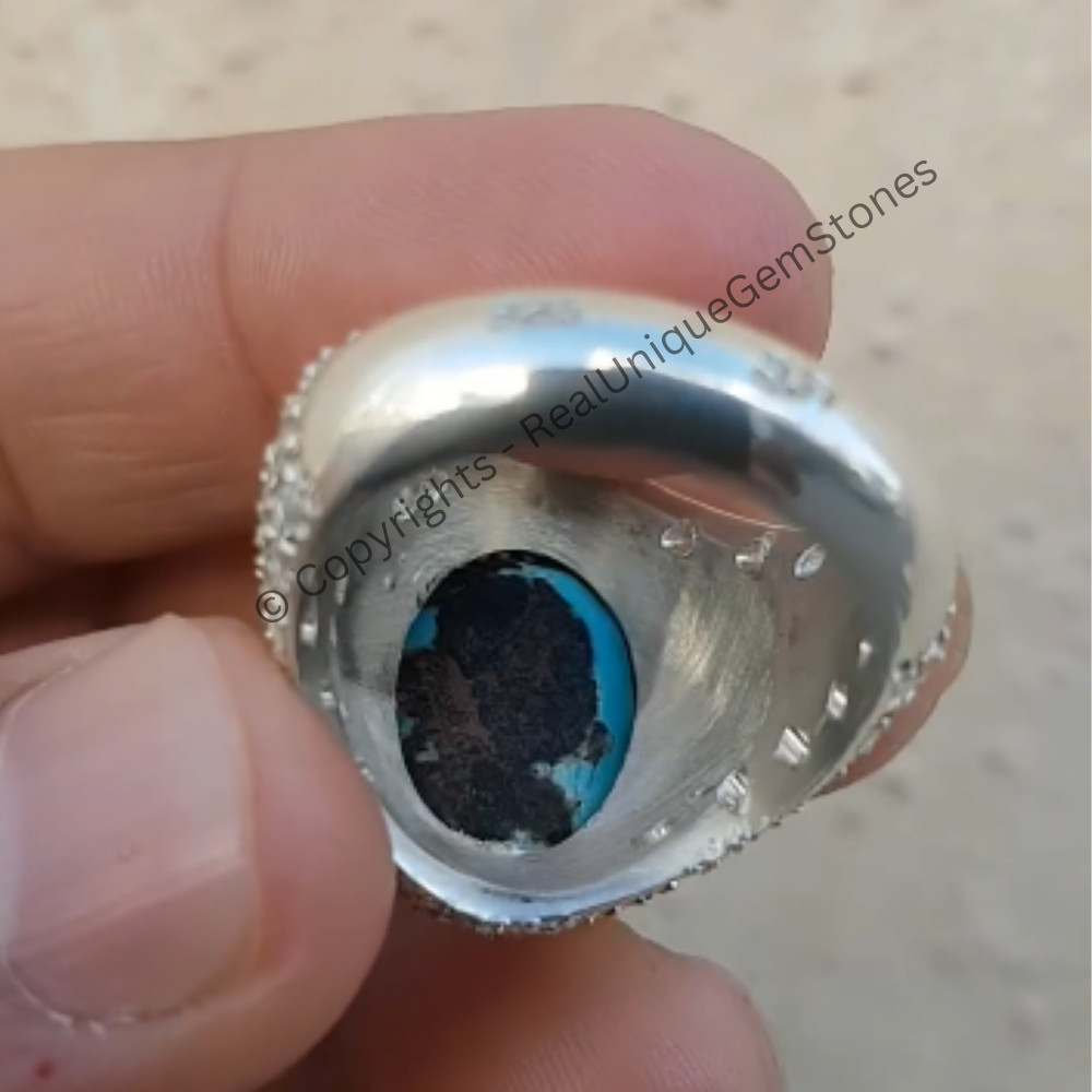 как выглядит Genuine Blue Feroza Gemstone Ring Natural Turquoise Ring in Sterling Silver 925 фото