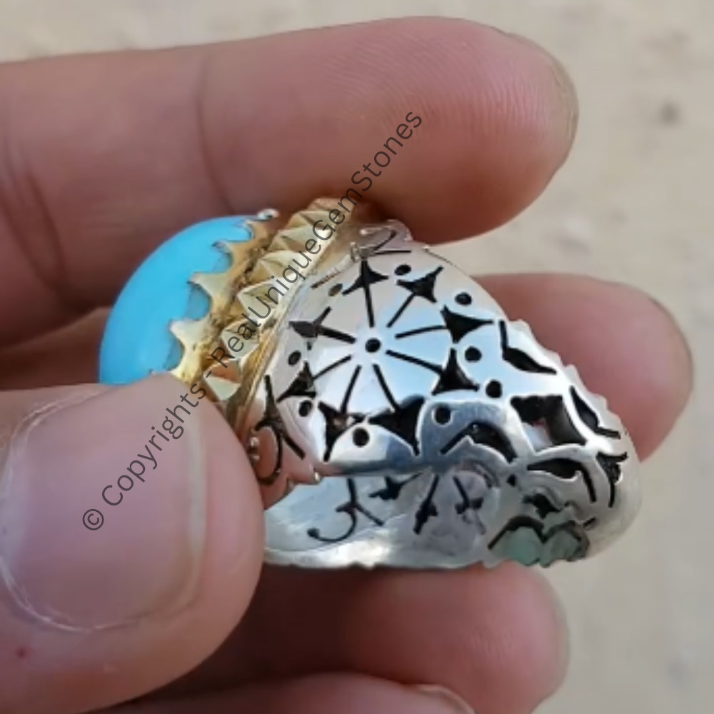 как выглядит Pure Neeshapuri Feroza Ring Handcrafted Sterling Silver 925 Original Turquoise фото