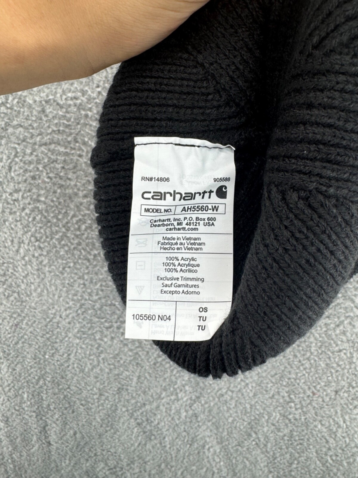 как выглядит Carhartt Black Rib Knit Beanie Hat Winter Pull On AH5560-W Stalking Cap One Size фото