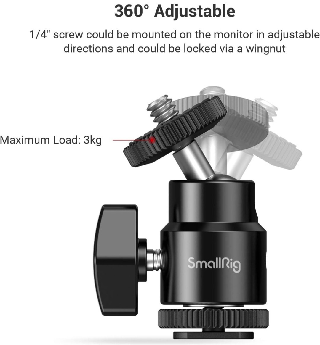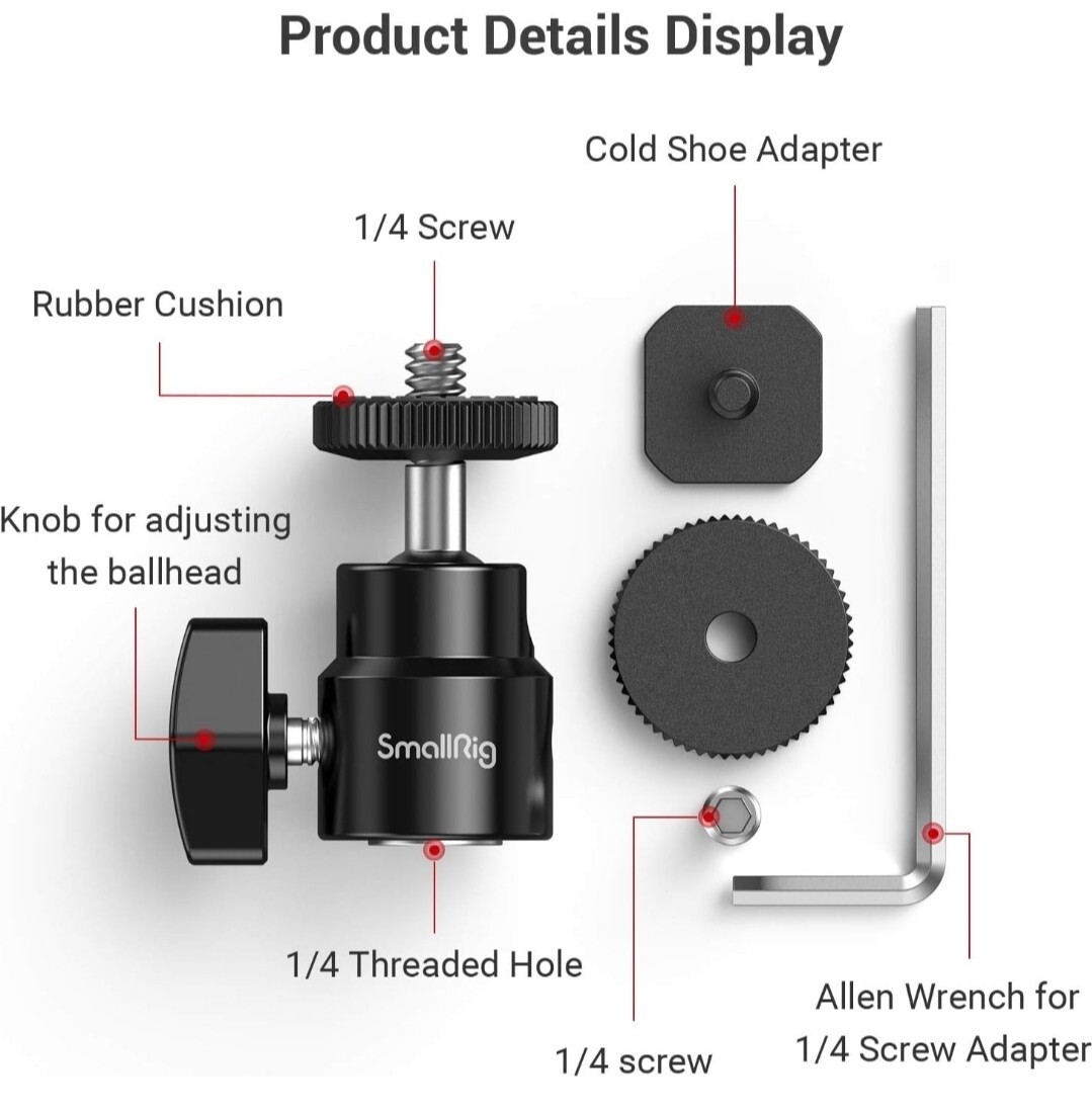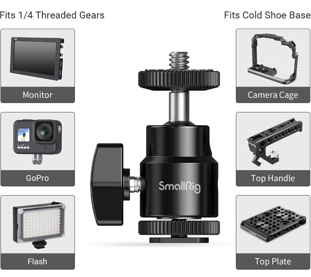 SmallRig 1/4 Camera Hot Shoe Mount, Ballhead Tripod with 1/4 Screw, 2pcs Pack