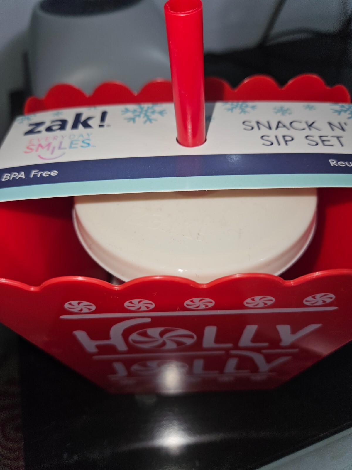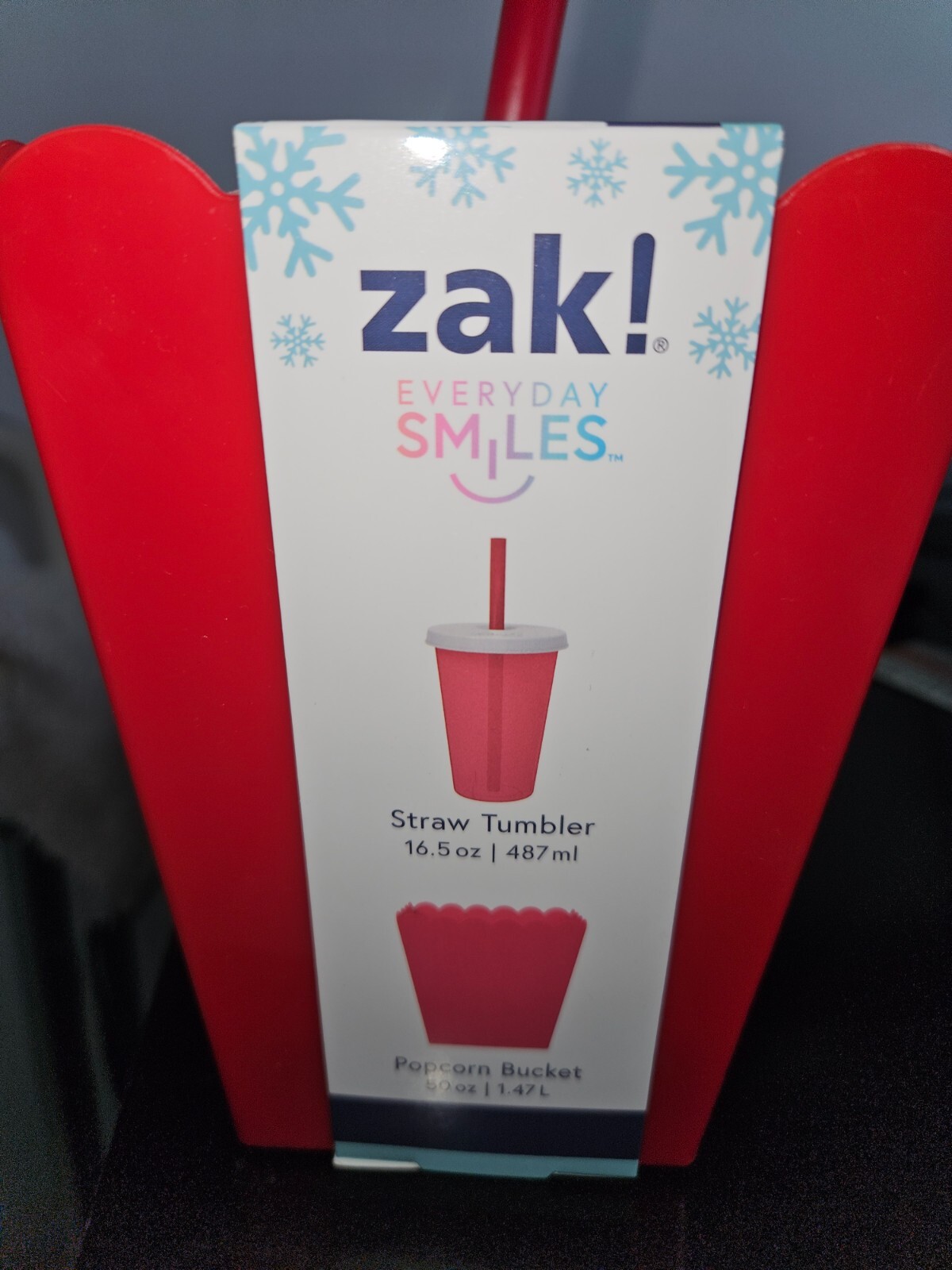 NEW Zak Holiday Snack N Sip Set Straw Lid Covered Tumbler Popcorn Bucket