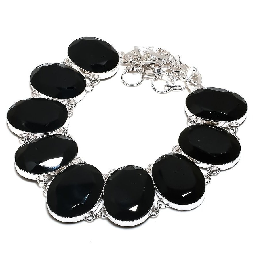 как выглядит Faceted Black Spinel Oval Shape Gemstone Handmade Jewelry Necklace 18" SR 792 фото