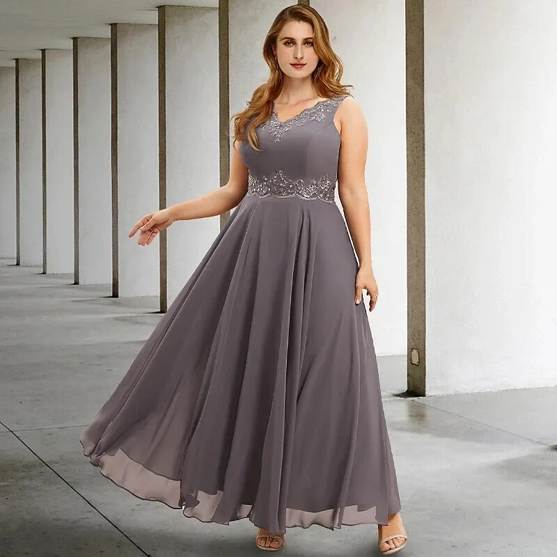 A-Line Mother of the Bride Groom Dress Chiffon Applique Lace Wedding Guest Gowns